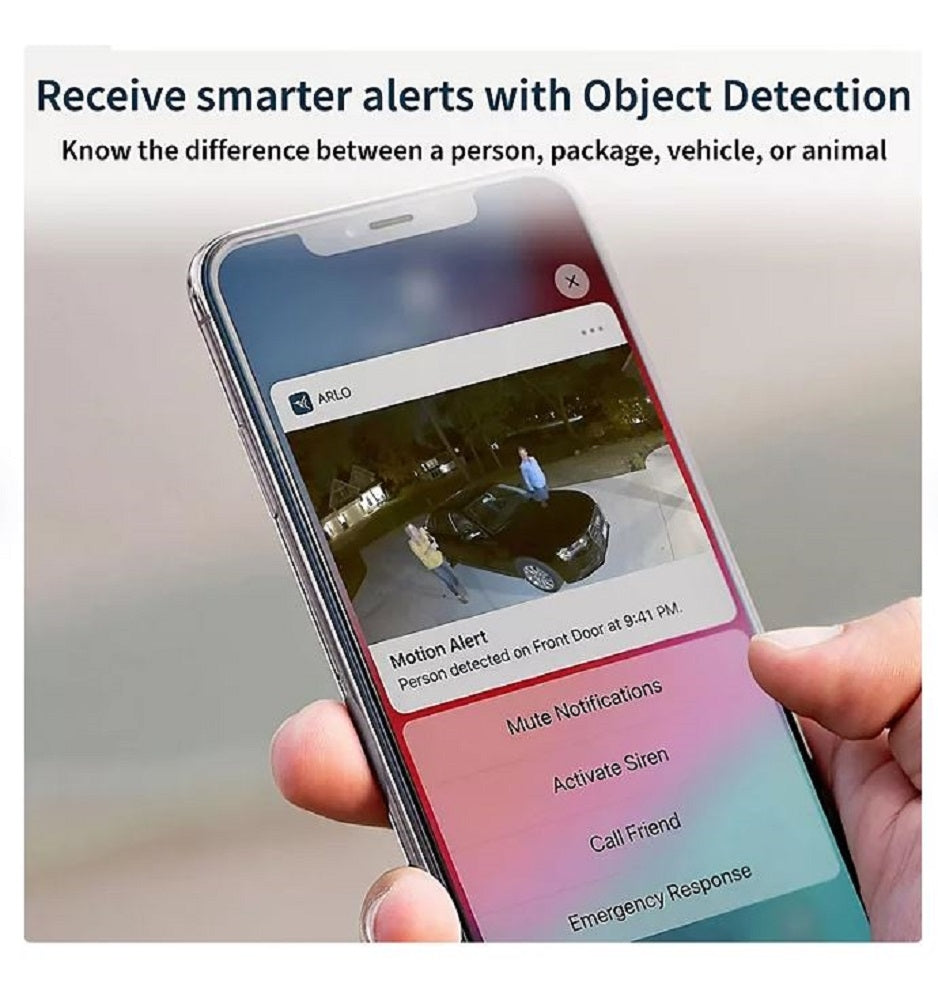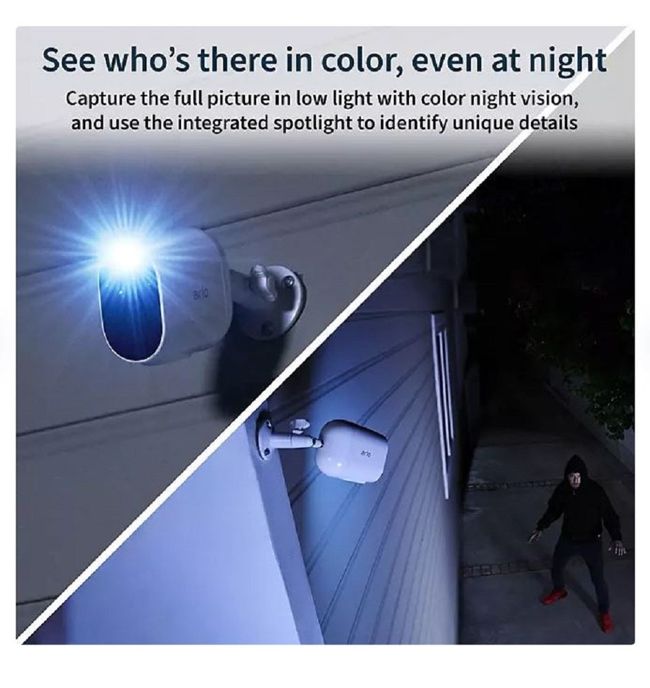 See the essential details, day or night with these Arlo Essential 1080p Wireless Security Cameras. Each Arlo Essential captures video in 1080p resolution, with an integrated spotlight and color night vision. Wire-free and weather resistant, these Arlo Essential security cameras works indoors or out. Set it up yourself in just a few easy steps and clearly see who’s there, even at night. Get notifications on your smartphone when your camera spots people, vehicles, animals or packages, and view recorded video clips directly from your phone, with three months of included Arlo Smart. Speak to visitors with clear, two-way audio. Easily recharge your cameras using the included power cable (battery not removeable).