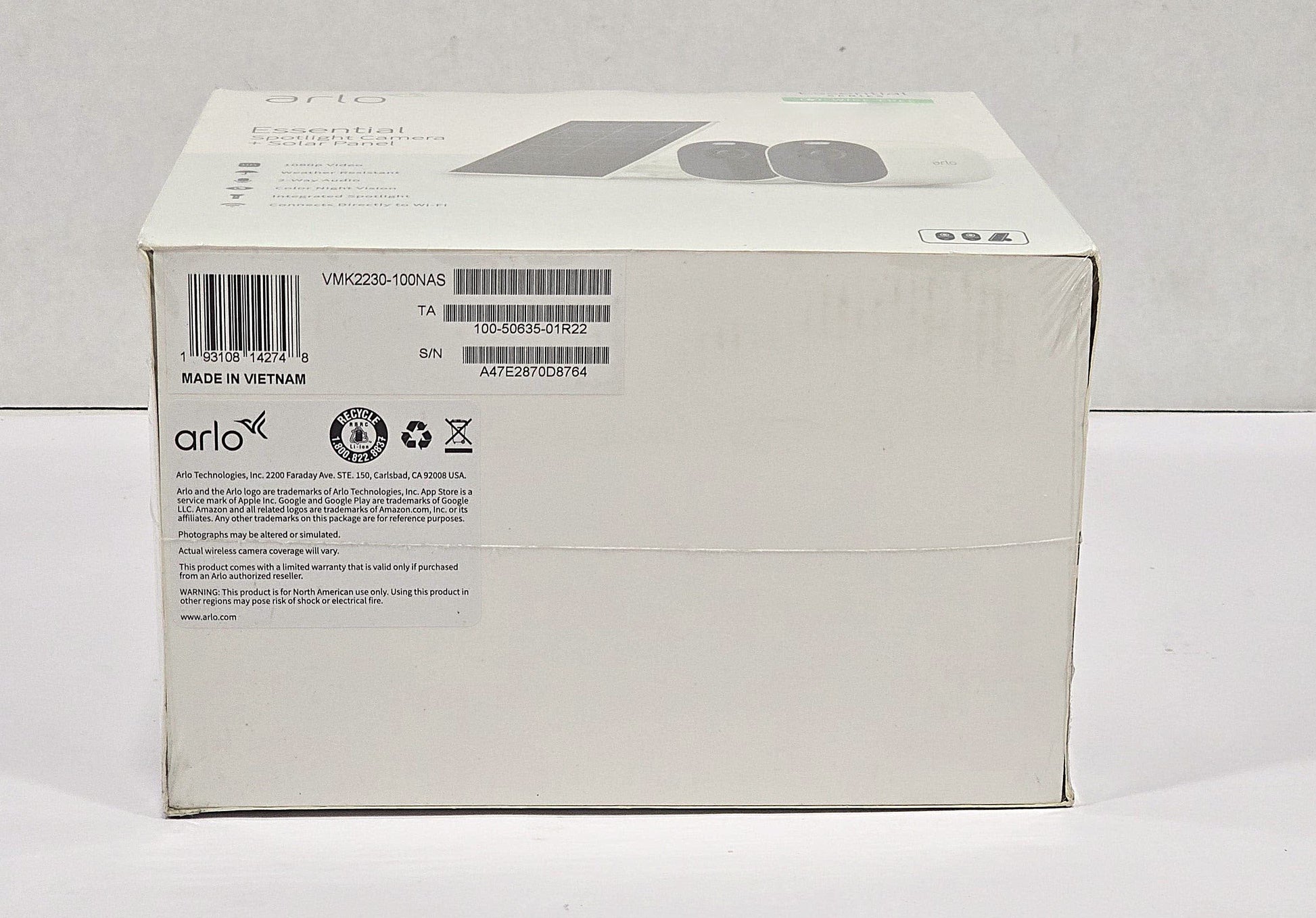 | Includes | 2 Arlo Essential Cameras, Wall Mount and Screw Kits, Solar Panel, Charging Cable, and Quick Start Guide |