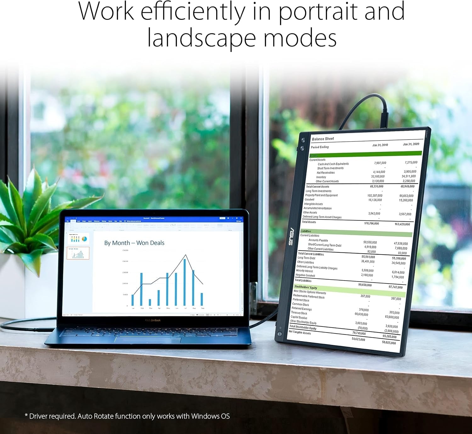 - ASUS ZenScreen 15.6" 1080p 5ms 60Hz FHD Portable Monitor
