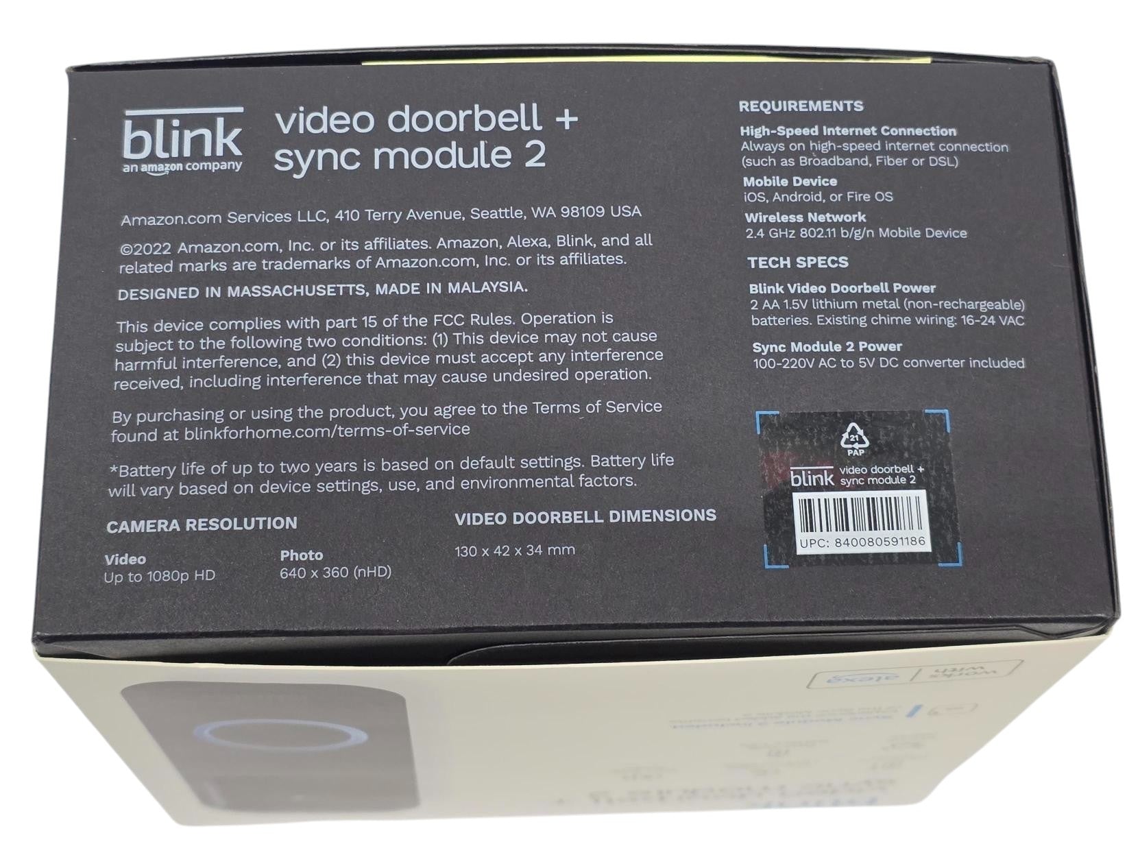 - Includes video doorbell, sync module 2, indoor cam and Blink yard sign