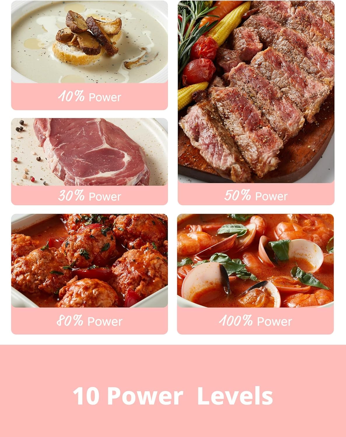 - Bright digital display, easy-to-read control panel, interior light, and 10-inch glass turntable