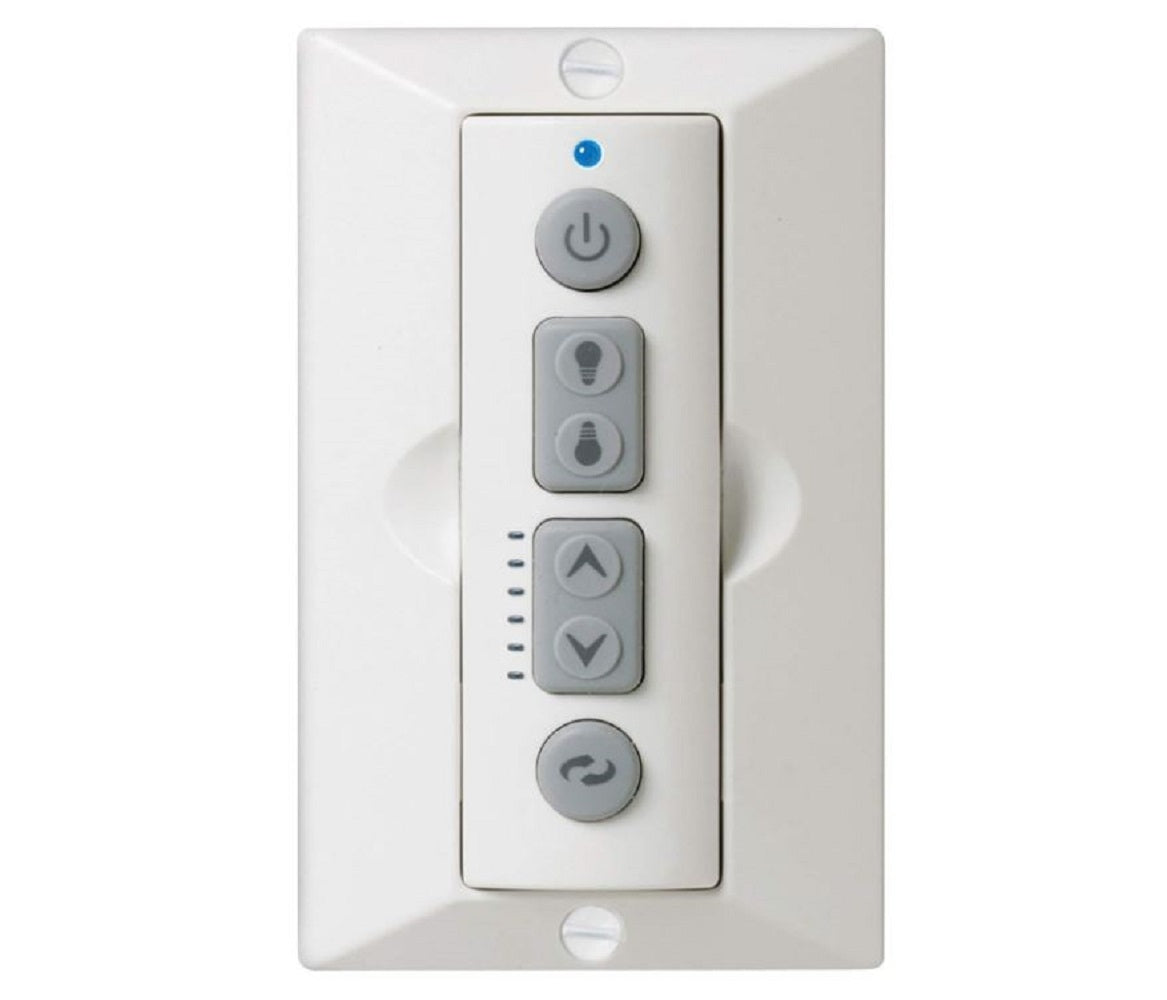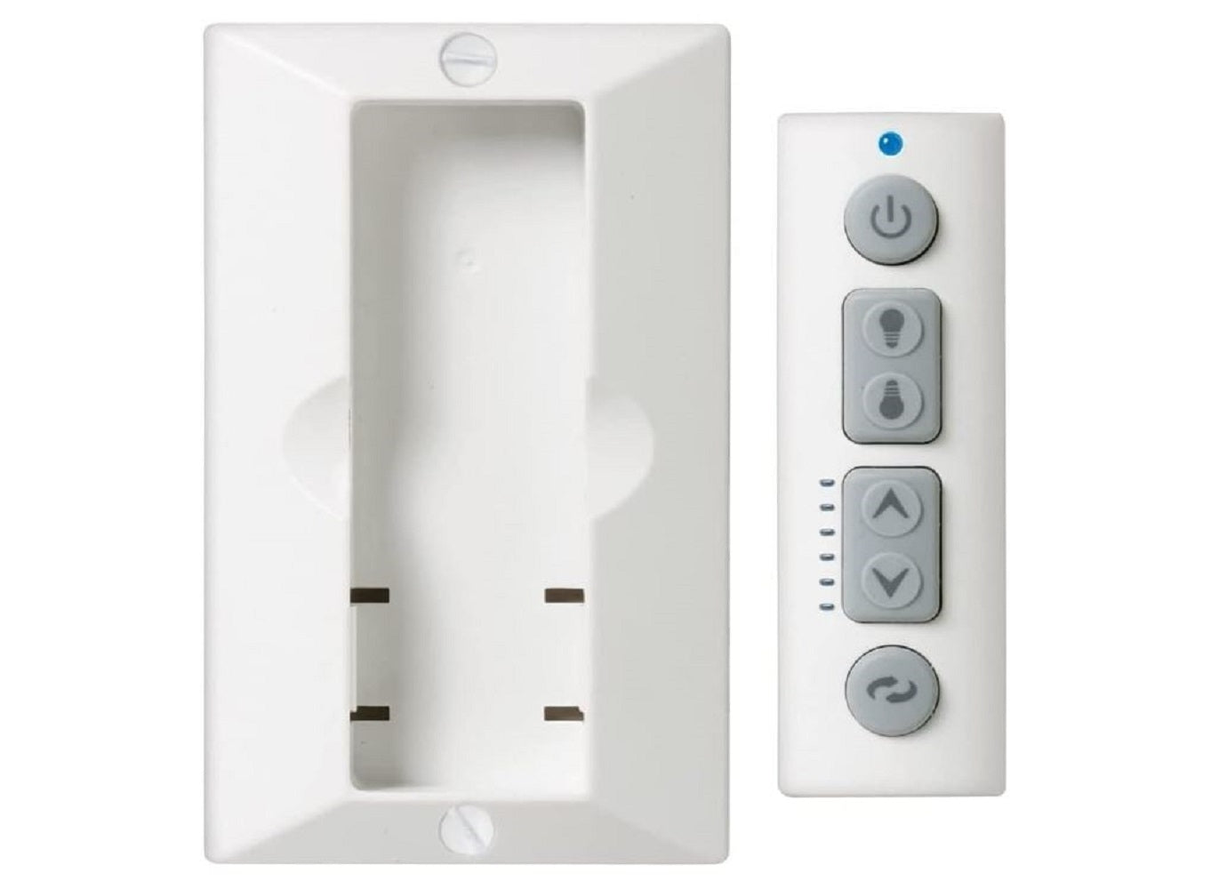 The 6-Speed 2-in-1 LED remote control and transmitter system with optional wall mount was designed with your comfort in mind, providing a hassle-free way to enjoy your preferred speed and light settings. A full range light dimmer with incandescent bulbs (250-watt max) and independent uplight/downlight operation is included. SR650 ceiling fan remote controls can be used mounted on the wall or as an independent remote control; single & dual-gang decorative plates are included. SR650 ceiling fan remote controls have 1-Touch Reverse and are compatible with the RC188, RC212 and RCK55 Receivers (sold separately).