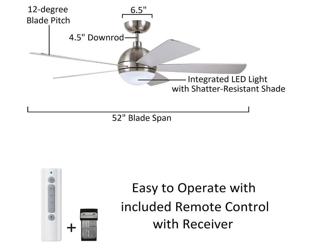 Emerson CF235BS Astor 52" Ceiling Fan with LED Light, Brushed Steel