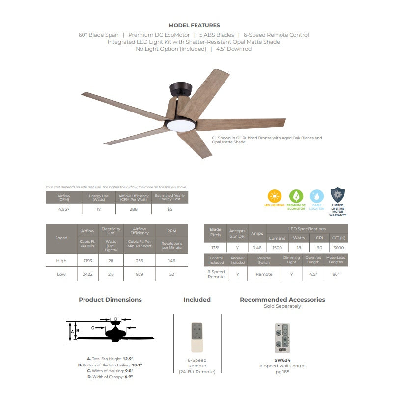 Emerson CF840ORB Floret Eco 60" Ceiling Fan , Oil Rubbed Bronze Specifications: