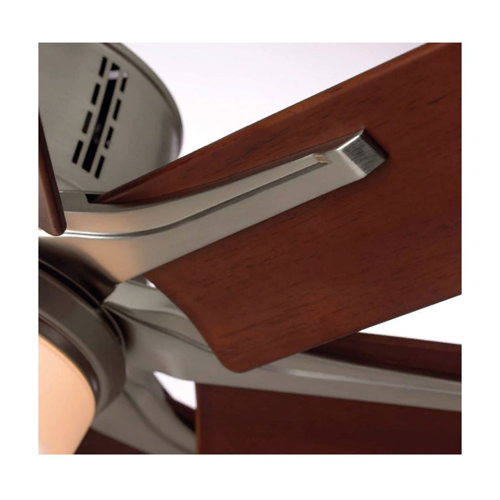 CONTEMPORARY INDOOR CEILING FAN – Its sturdy metal construction boasts a brushed steel finish that is perfectly complemented with 8 walnut blades. Damp rated for indoor use and makes an ideal living room ceiling fan