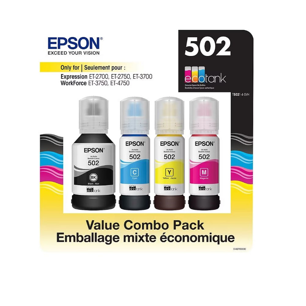 Epson EcoTank 502 Ink Bottles Value Club Pack (Black, Cyan, Magenta, Yellow) T5021-4-SVH Description: