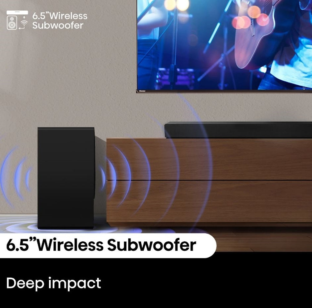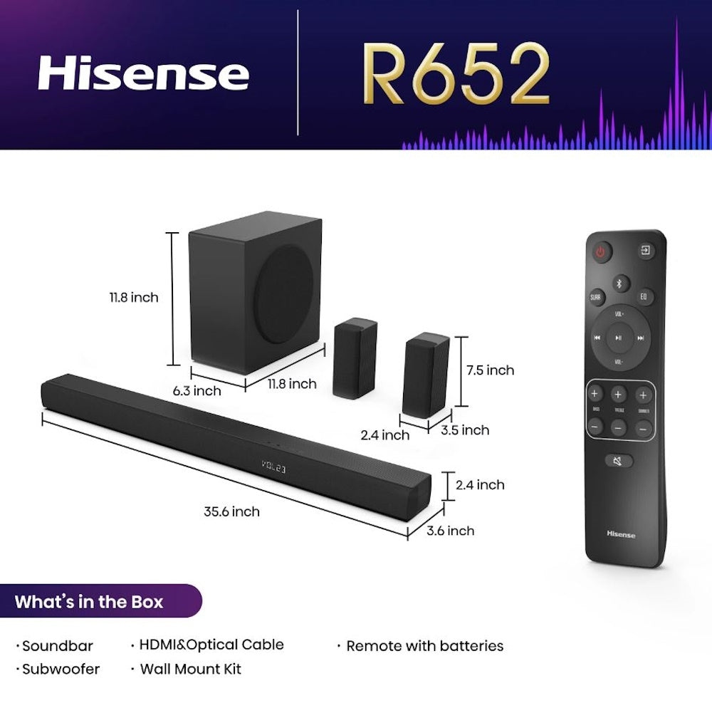 Hisense 5.1 Ch Soundbar R652 w/ 440W output, Rear Surround Speakers, 6.5” Wireless Subwoofer