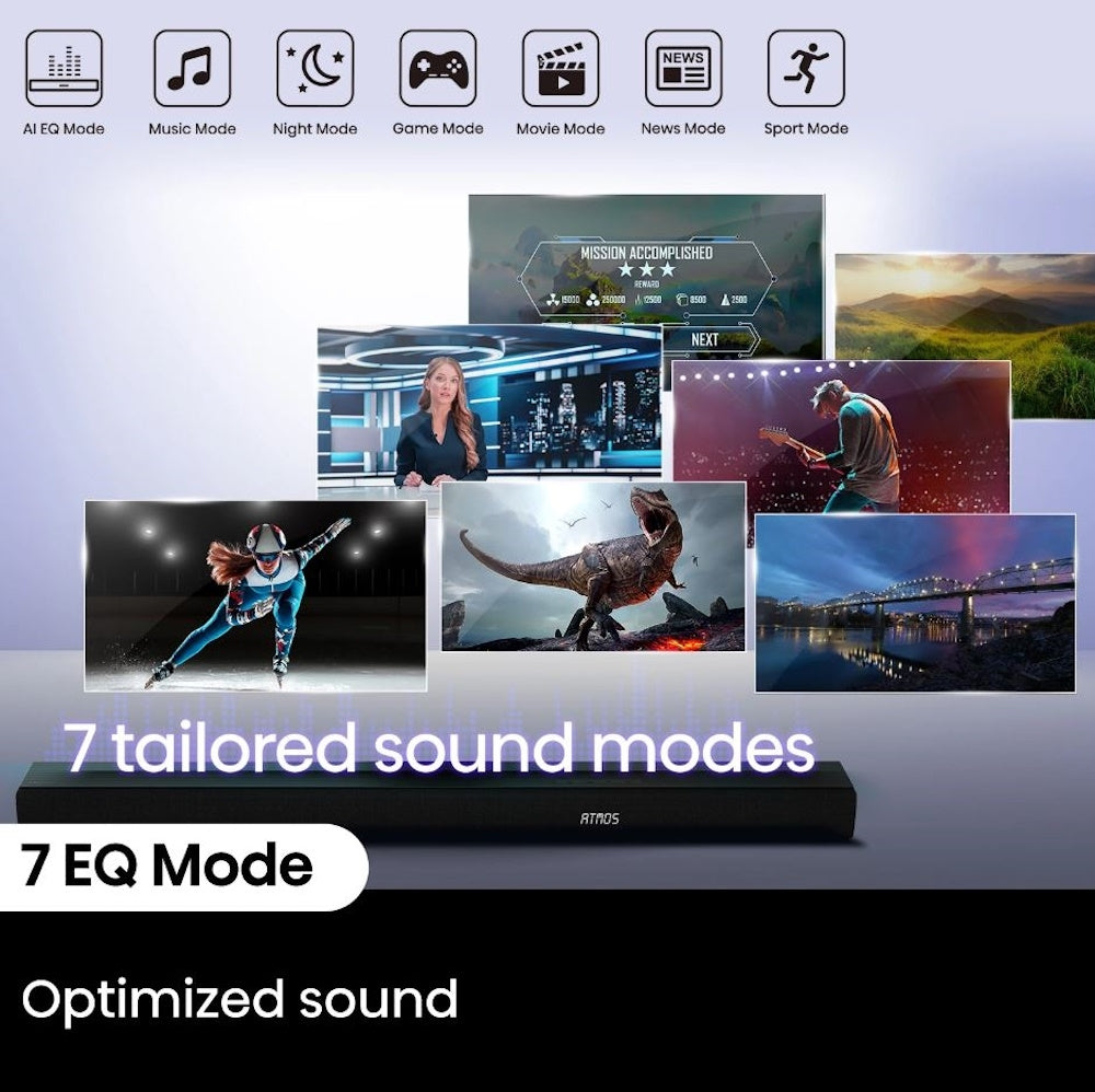 - 5.1 Surround Sound - 7 speakers built into the soundbar. Left and right front channel, center channel, left and right overhead surround channel, surround the listener in 3D audio for room-filling sound that delivers a true Dolby Atmos experience.