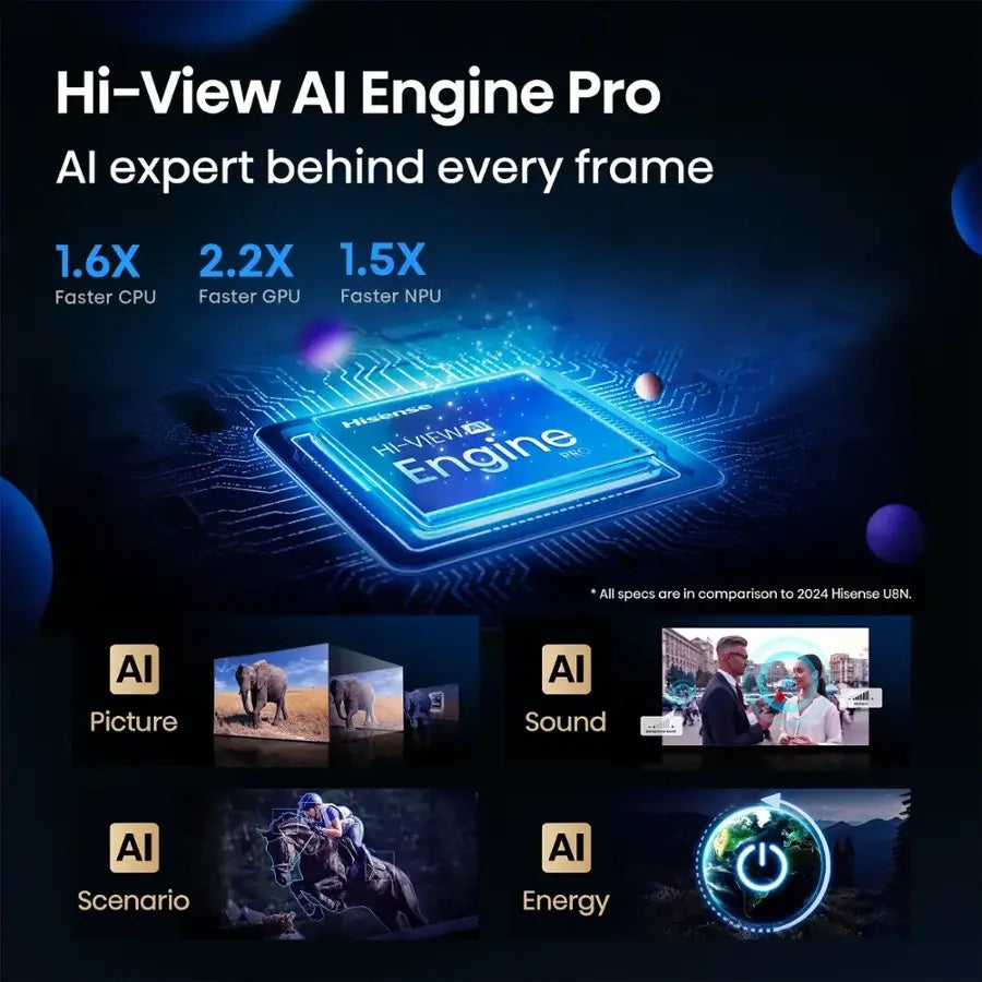 Enjoy the game from home, but feel like you’re there. Powered by the Hisense proprietary chipset, Hi-View AI Engine Pro automatically optimizes the picture and sound based on the content you are watching. This intelligent feature detects, analyzes and adjusts the details, depth and appearance of everything you watch or play, making every visual even more realistic.