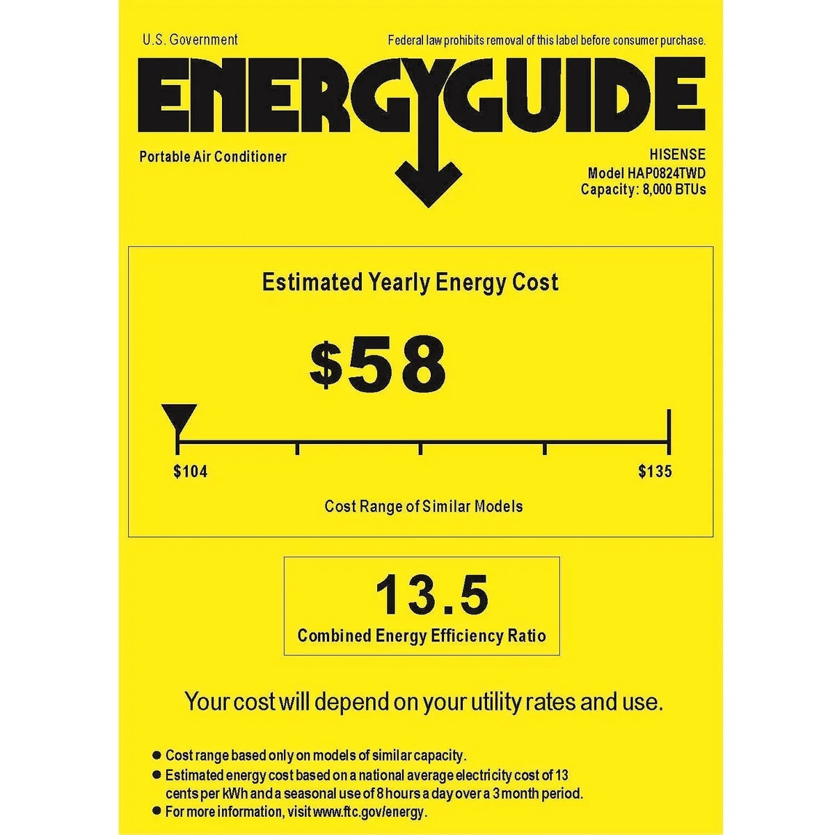 - Hisense 8,000 BTU Portable Air Conditioner w/ Dual Hose & Inverter - HAP0824TWD