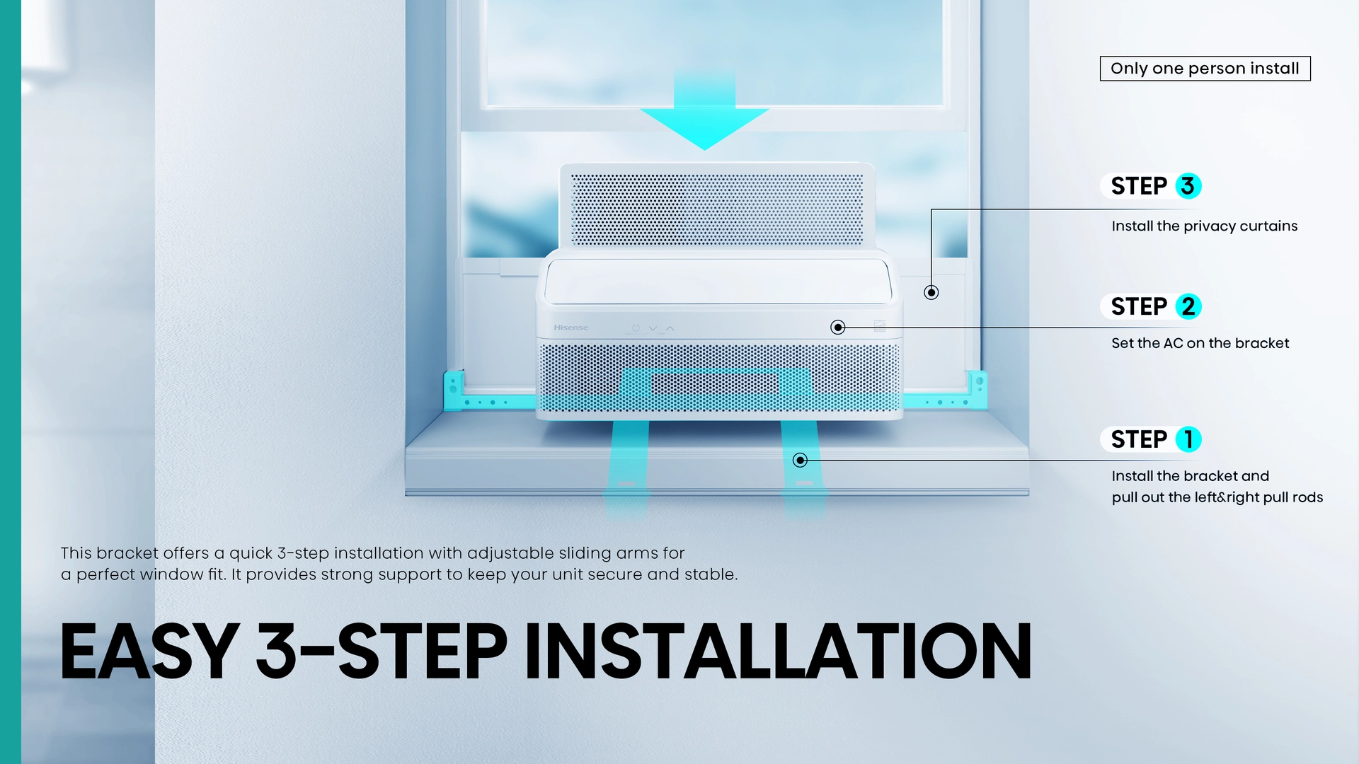 Easy‑Install Bracket: Includes a mounting bracket that straddles the window for secure installation.