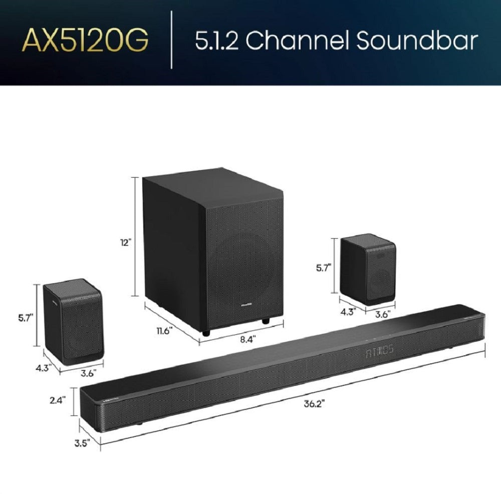 Hisense AX Series 5.1.2 Ch 420W Soundbar with Wireless Subwoofer, Wireless Rear Speakers, and Dolby Atmos AX5120G