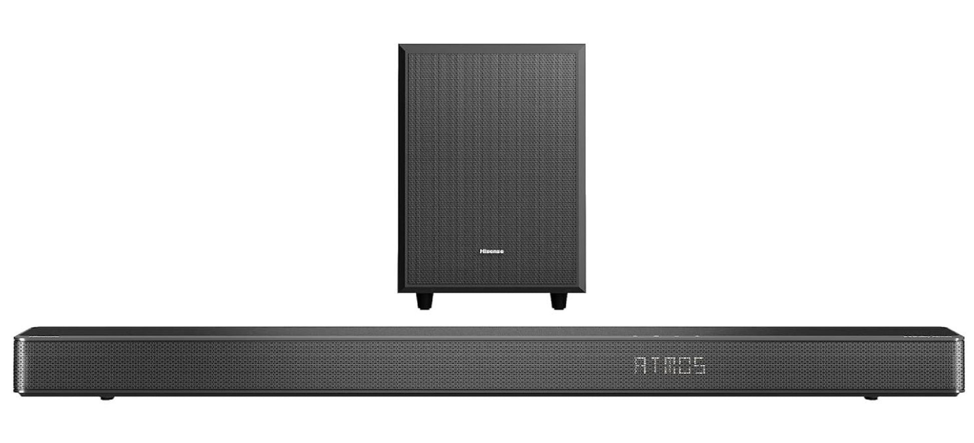 Upgrade your audio experience with the AX3125H 3.1.2 channel soundbar and wireless subwoofer. The AX3125H’s 440 watts of sound fills the room with a 7-speaker array that also projects sound overhead, making the most of Dolby Atmos, creating an immersive, surround sound experience. 7 audio enhancement modes, including news, movie, sports, game, and night modes, optimize sound specifically to the content or time of day and eARC provides a simple one-cable connection with the included HDMI cable. Bluetooth audio makes it easy to connect your phone, tablet or laptop wireless to enjoy music and more.