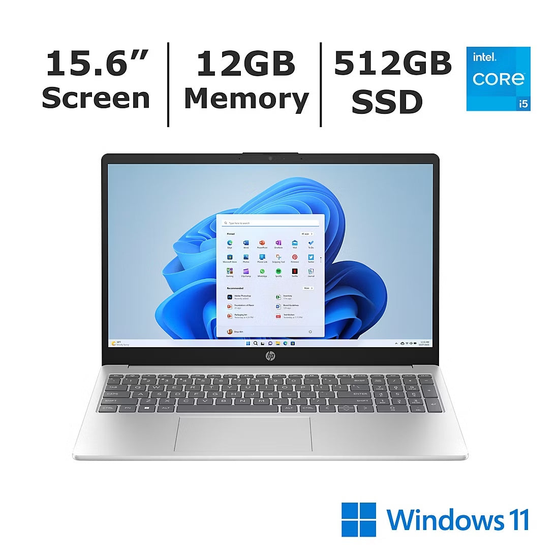 HP 15.6 inch Laptop - Touchscreen - Intel Core i5 - 12GB/512GB - Win 11 Home - Natural Silver A08Q4UA#ABA
