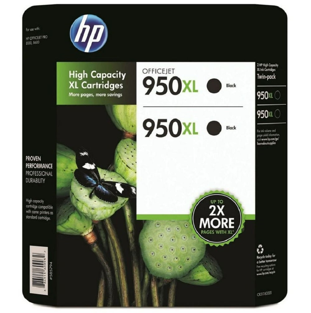 HP 950XL Black Ink Cartridge - Twin Pack. 2 ink cartridges included. High capacity cartridges compatible with same printers as standard cartridges. Compatible with HP OfficeJet Pro 8100, HP OfficeJet Pro 8600.