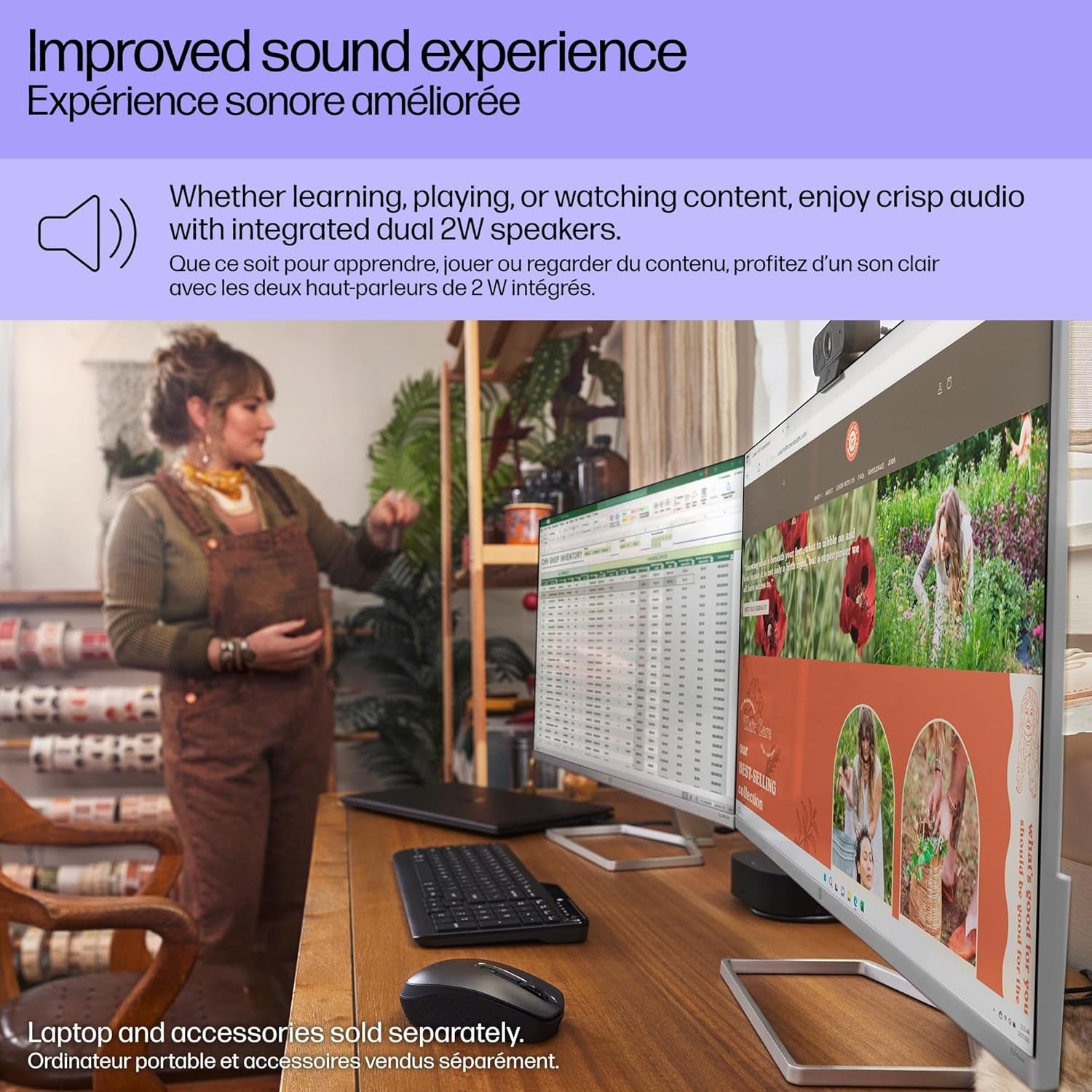 Get lost in any passion project with the HP Series 5 23.8-inch FHD Monitor with Speakers. Its sleek design with integrated dual 2W audio gives you the flexibility to fully enjoy your entertainment, and its vibrant color and deep contrast ratio lets you see everything as it was meant to be seen. Enhance your screen time and your pastime with a higher refresh rate for a screen-tear-free experience.