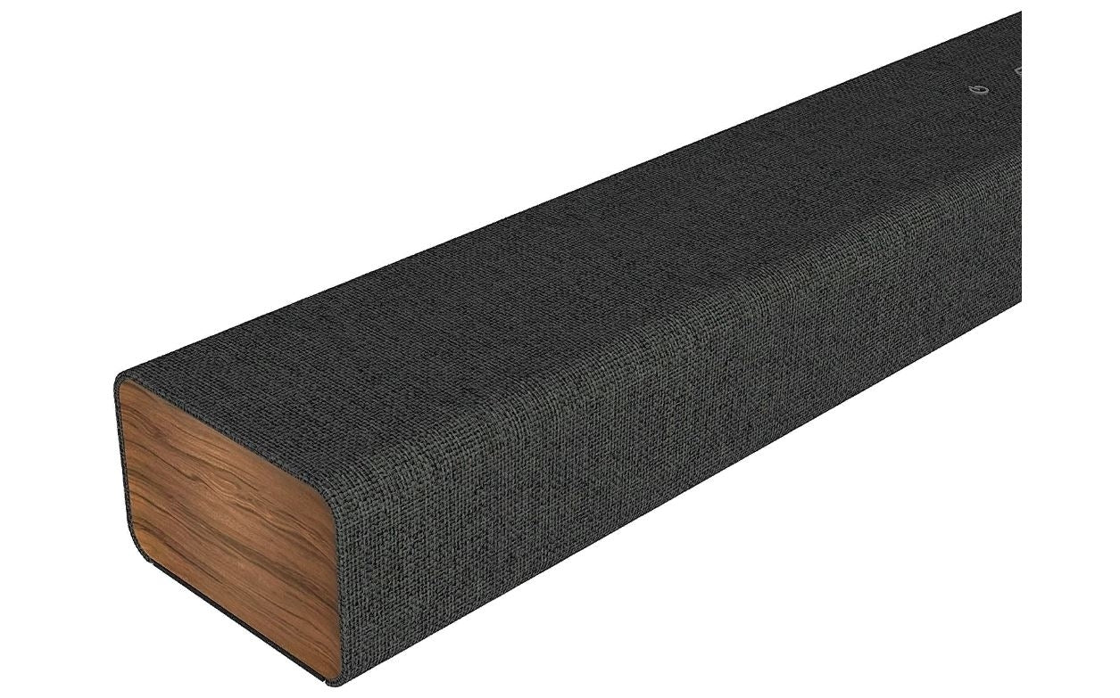 Every detail of LG Sound Bar SP2 has been carefully considered to create a pleasing aesthetic that complements both your TV and home decor. Stylish wood-tone side panels, elevated controls, and premium fabric make this a speaker that looks as good as it sounds.