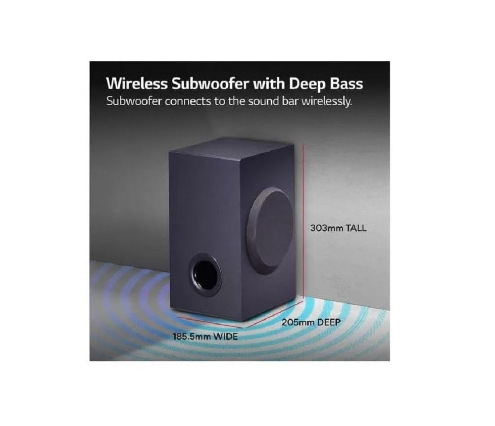 - Turn your TV into a home theater with 2.1 Channels and a booming wireless subwoofer