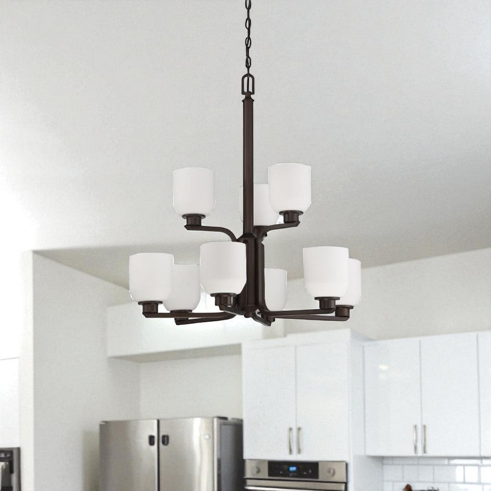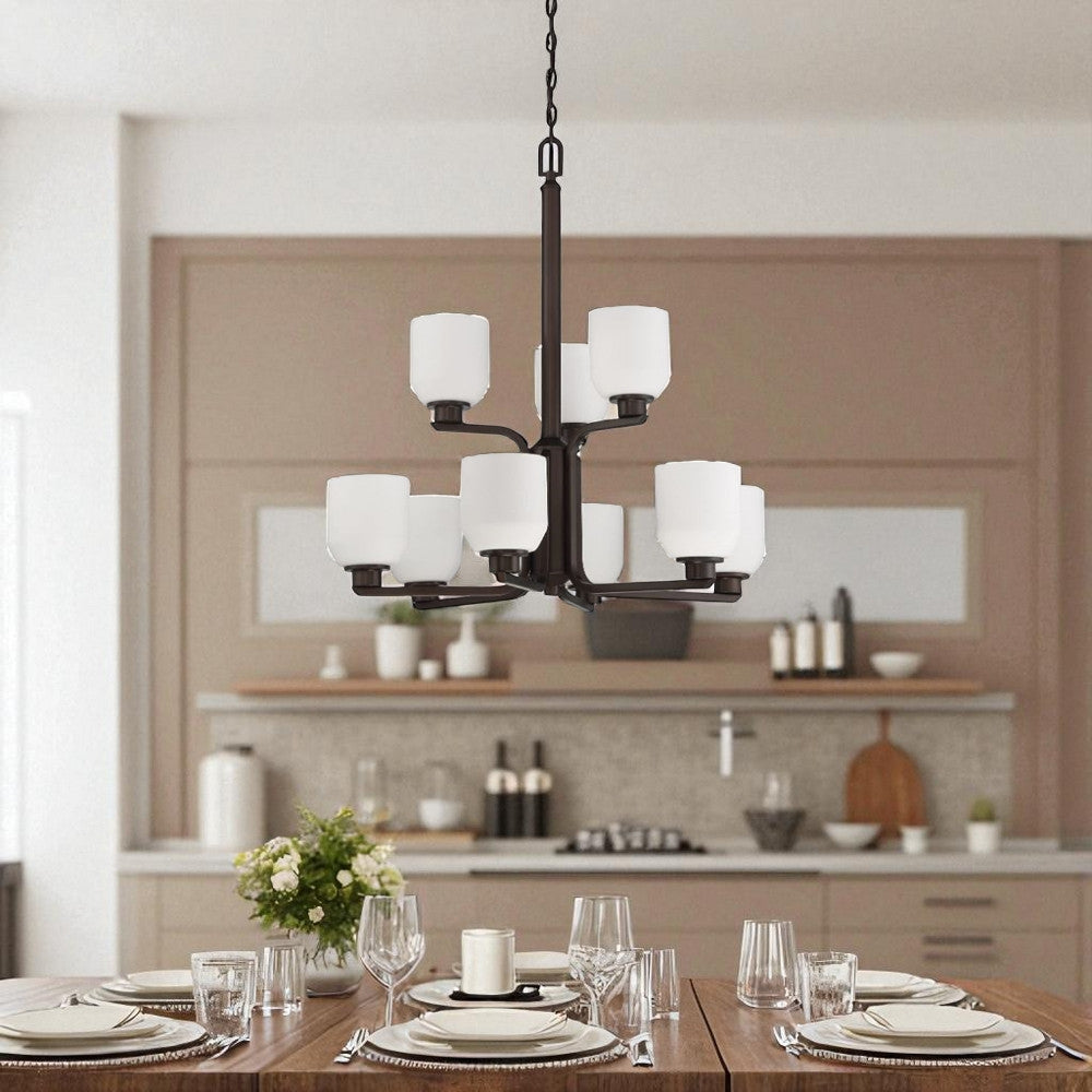 9-Light QUARTZ CHANDELIER OPAL GLASS - Bronze Chandelier