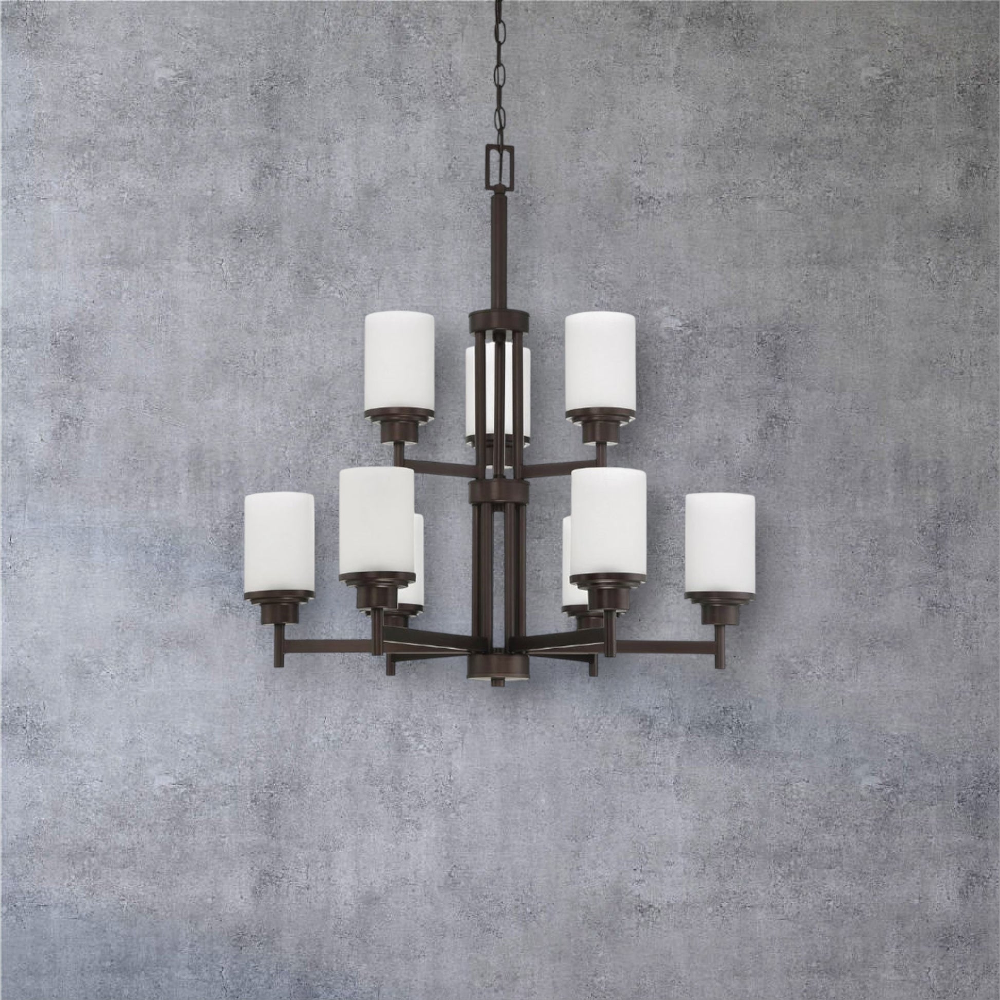 This Luminance 9-Light Somes 2-Tier Chandelier with Linen Glass is in New condition.