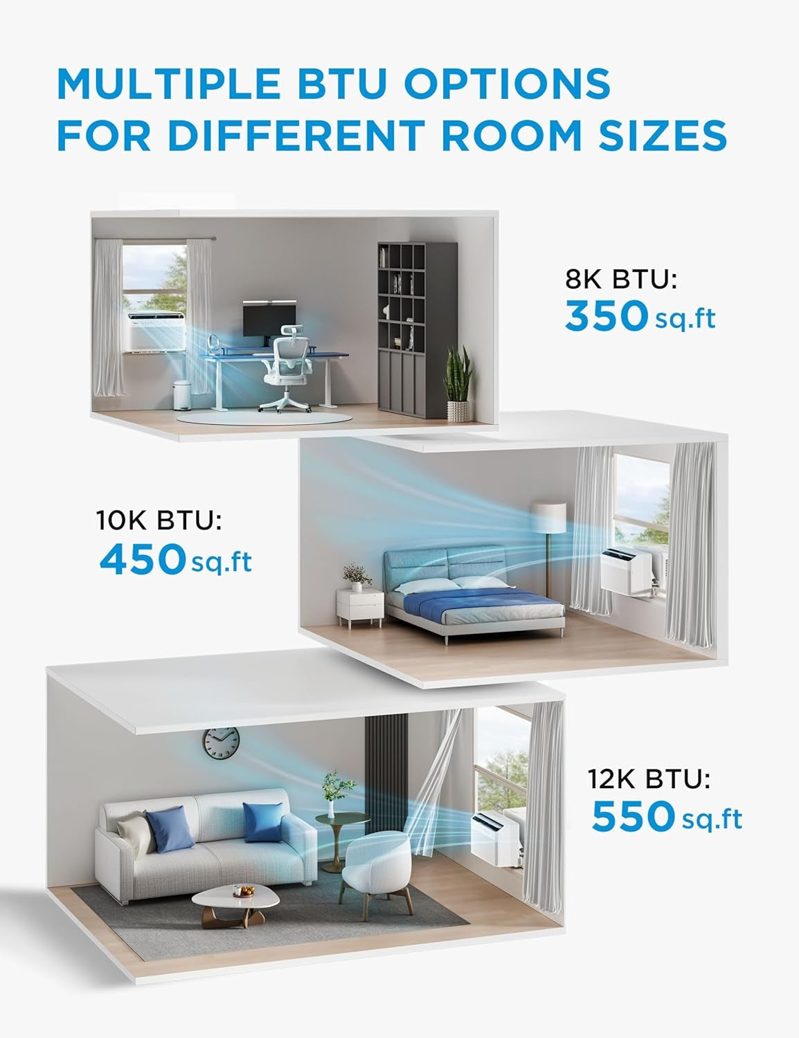 - Midea 8,000 BTU U Shaped 350 Sq. Ft. Smart Inverter Window Air Conditioner
