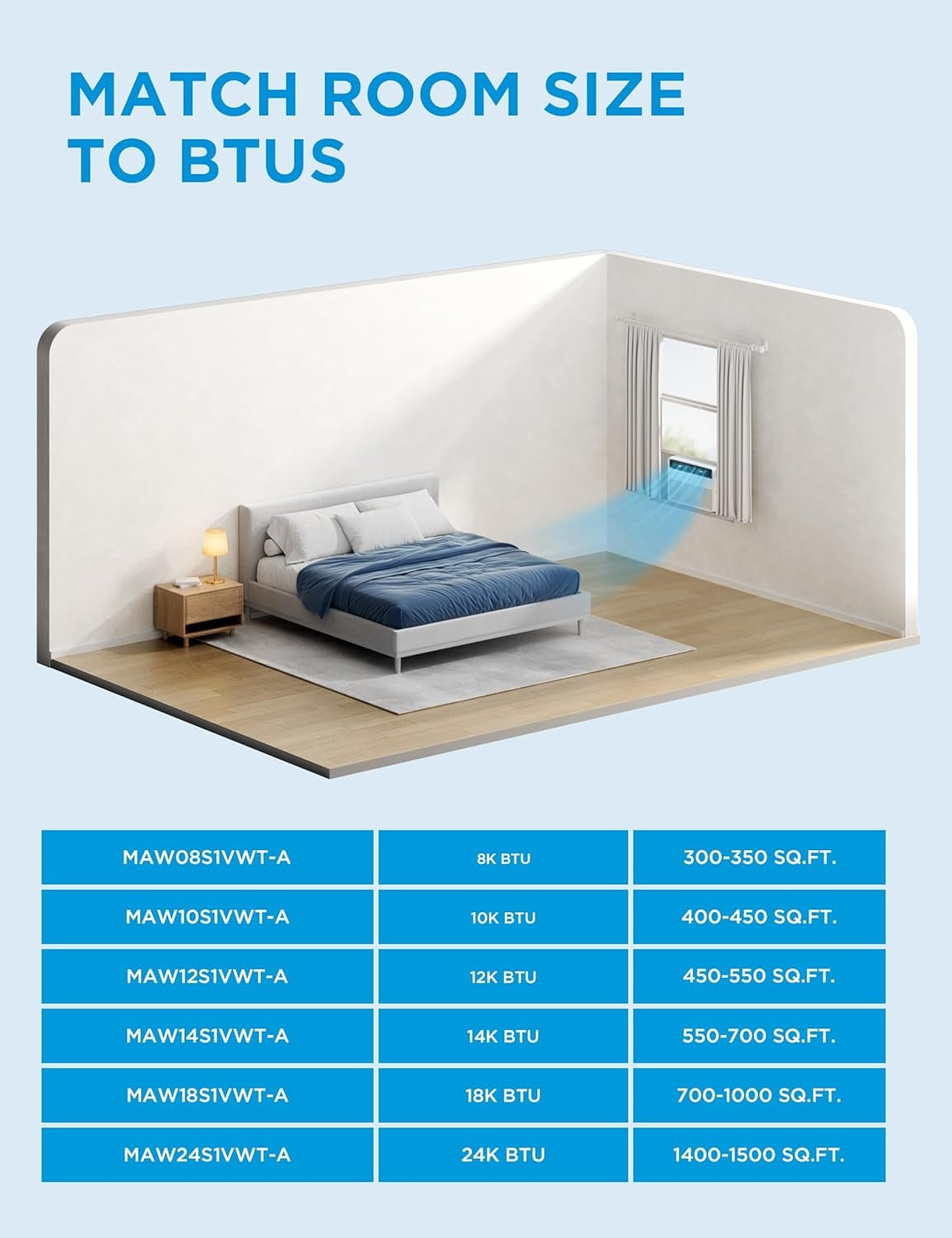 - Midea MAW10S1VWT-A 10,000 BTU Smart Inverter Window AC