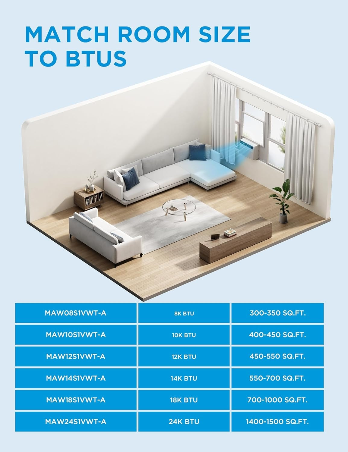 - Midea MAW14S1VWT-A 14,000 BTU Smart Inverter Window AC Unit