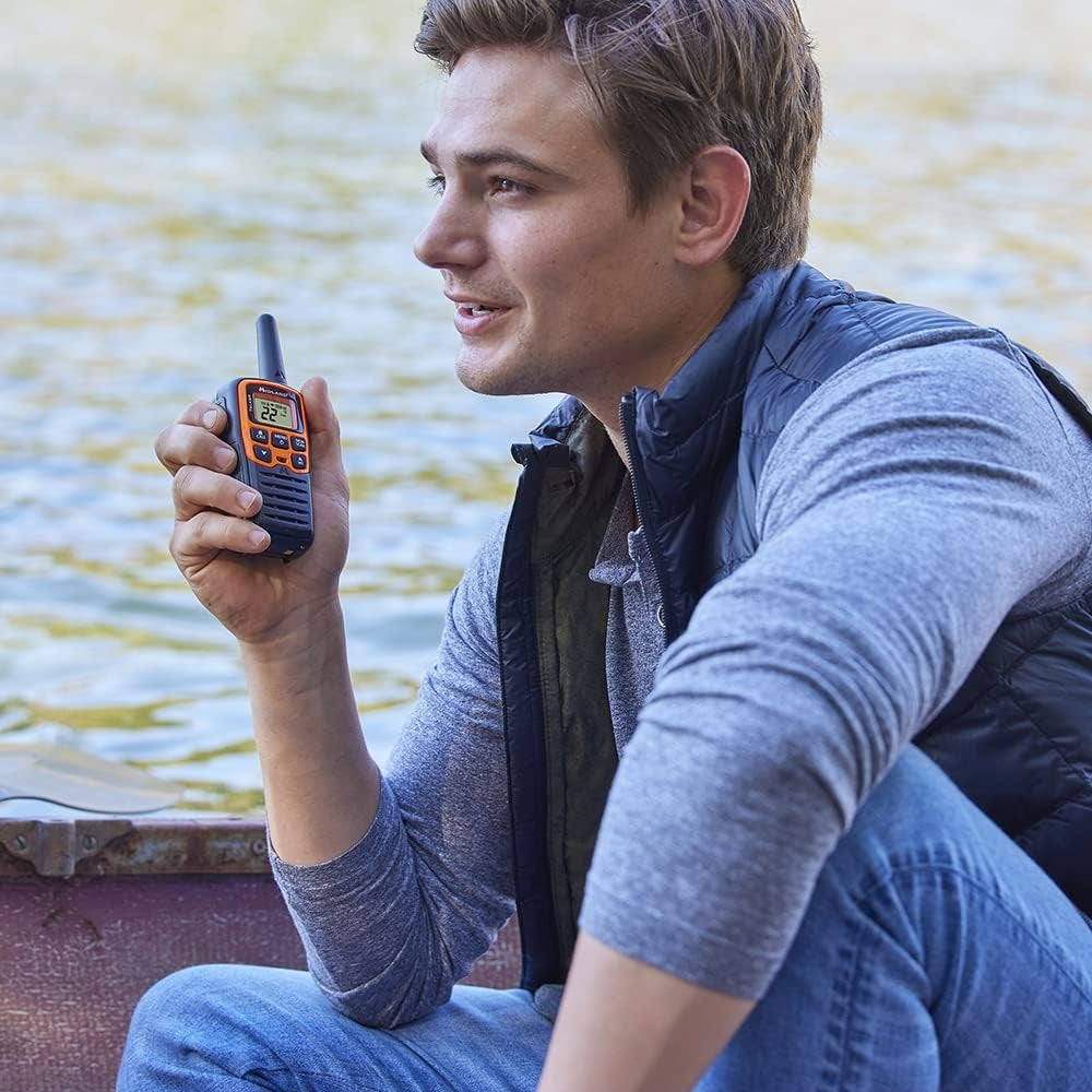 Recharge this Midland X-TALKER two-way radio set in the included charging base, so you're always connected when you're out and about. The radio features a 28-mile range over water or rural land, making it a reliable option for boaters, and this Midland X-TALKER two-way radio features 38 privacy codes, keeping your conversations secure.