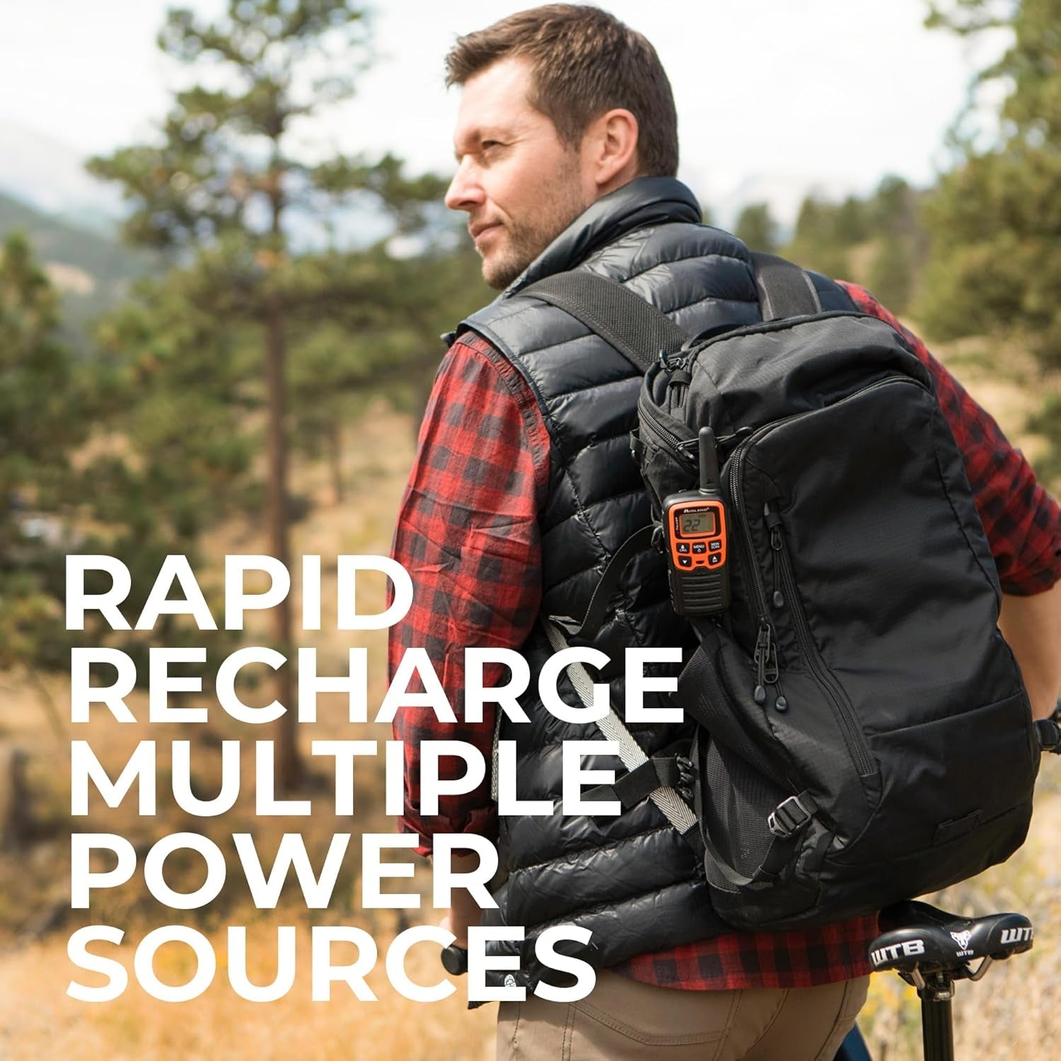 Midland X-TALKER 28-Mile, 22-Channel FRS 2-Way Radios (Pair), Belt clips, Rechargeable battery packs, Desktop charger, Micro USB charging cable, Owner's Manual