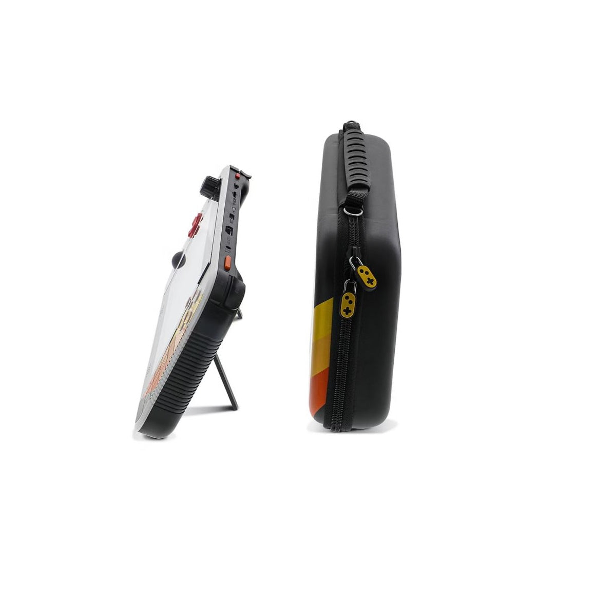 Level up your retro gaming with the officially licensed Atari Gamestation Go! Featuring over 200 built-in games—including Atari: Recharged, Balls of Steel, and PAC-MAN—this powerhouse packs a vibrant 7" full-color display, integrated paddle, track-ball, and keypad for authentic arcade-style control. SmartGlow technology lights up the controls you need for each game, while built-in Wi-Fi keeps your system up to date. Powered by a rechargeable battery, it comes complete with a Comfort Grip, travel case, AC adapter, charge cable, and screen protector for a premium portable experience.