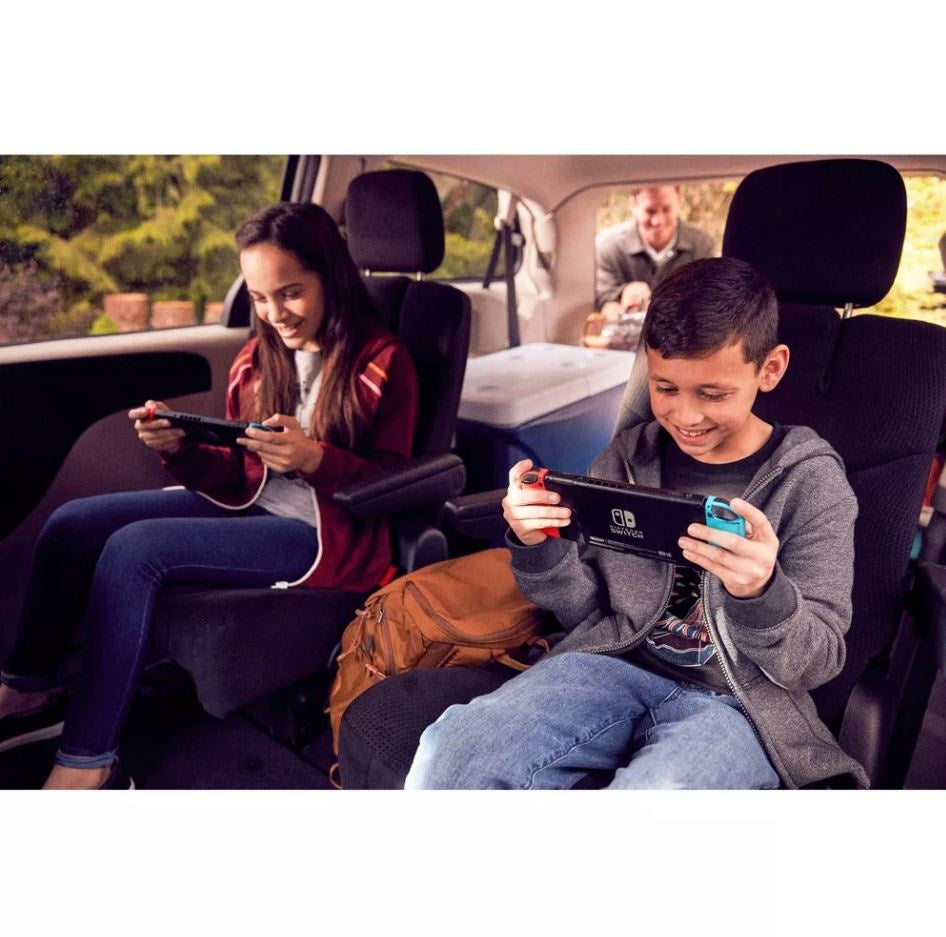 Play at home or on the go with one system. The Nintendo Switch system is designed to go wherever you do, instantly transforming from a home console you play on TV to a portable system you can play anywhere. So you get more time to play the games you love, however you like. Enjoy three modes in one system. TV mode: Connect your system to the TV using the included dock to enjoy a traditional gaming experience in HD. Handheld mode: Bring your games on your next travel adventure, or simply carve out some “me” time in the coziest seat in the house. Tabletop mode: Pop the kickstand on the screen and detach the included Joy-Con controllers to enjoy game time even without a TV. Games for the whole family. Nintendo Switch systems are the home of games like Super Mario Bros. Wonder, Mario Kart 8 Deluxe, and others starring Mario and friends. And don’t forget series like Animal Crossing, The Legend of Zelda, Splatoon, Pikmin, and more! Connect and play together. Share the smiles! You can buddy up on one system, play online, or even link your systems together wherever you are for multiplayer favorites like the Super Smash Bros. Ultimate game. Joy-Con controllers included. The two included Joy-Con controllers let you play multiplayer games right out of the box—just pass one to a friend and go. Attach both to the screen for handheld mode or use both as a single controller when you play on the big screen. Plus, built-in motion controls really put you in the game in titles like Super Mario Party.