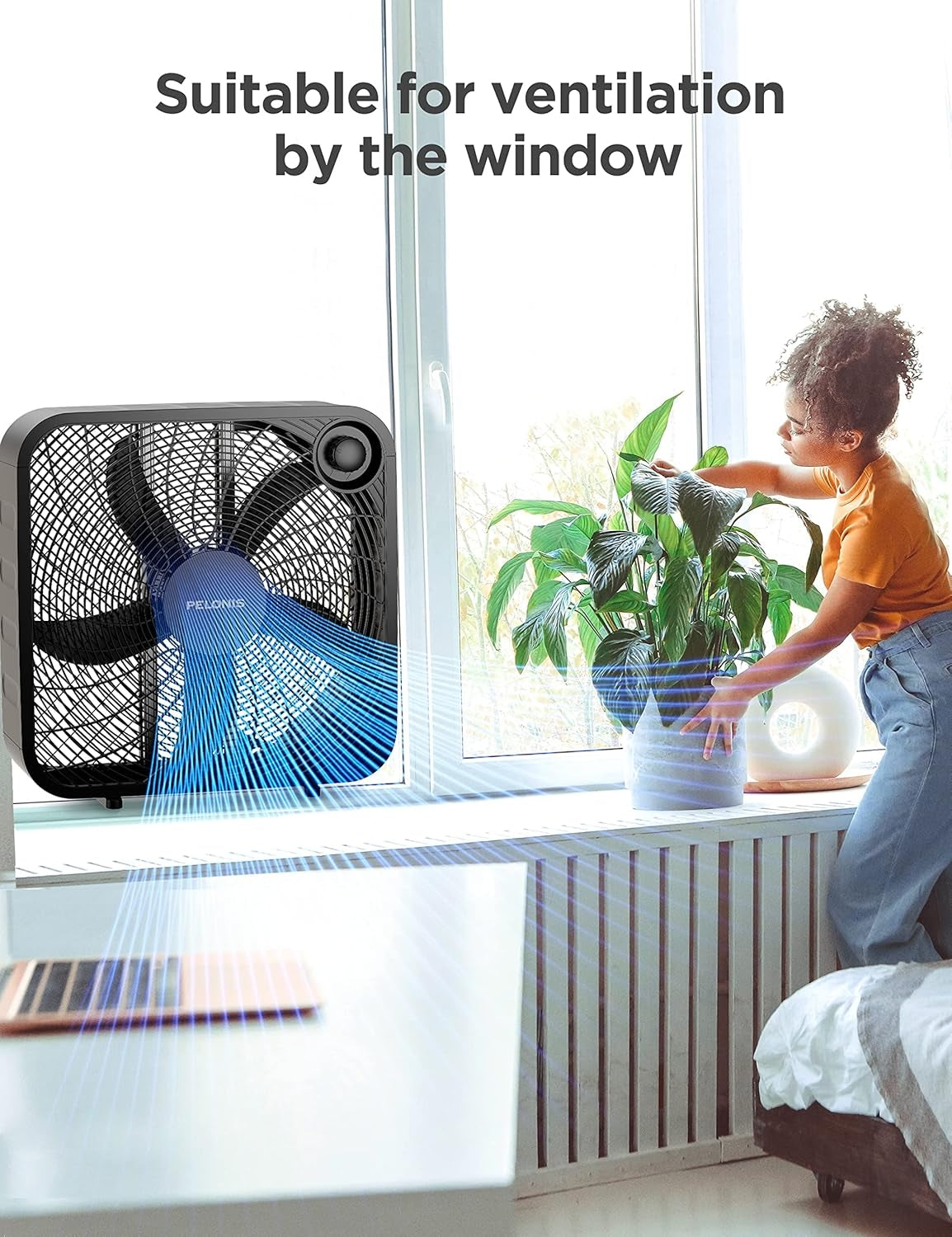 Pelonis 3-Speed Box Fan Black PFB50A2ABB-V