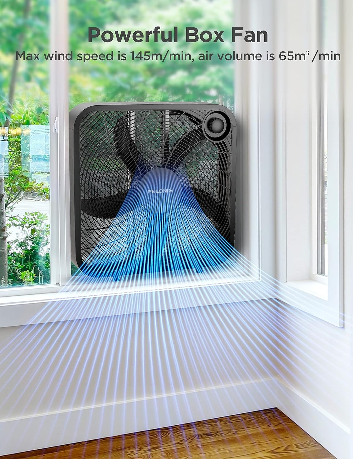 This Pelonis 3-Speed Box Fan is in New Open Box condition.