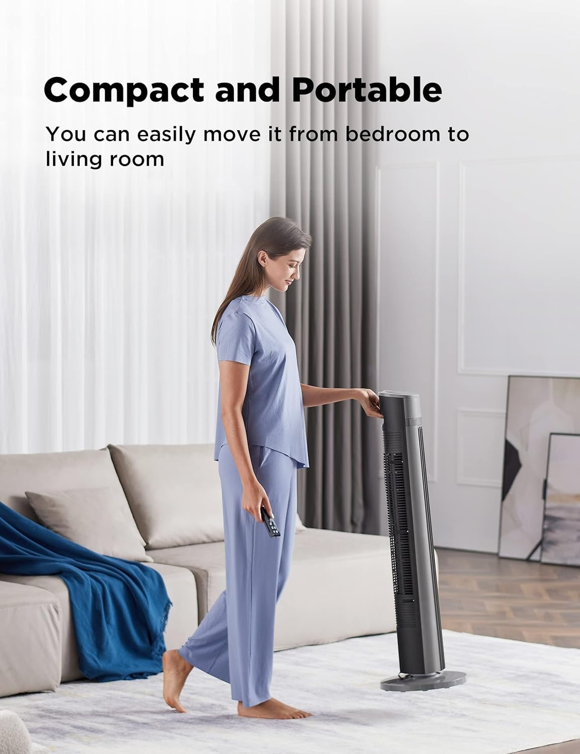 - WIDE ANGLE COOLING: 50cm air outlet with 90°silent oscillation along with the 15-hour programmable timer takes the experience to a completely new level. Plus, a rear handle makes it much easier to relocate.