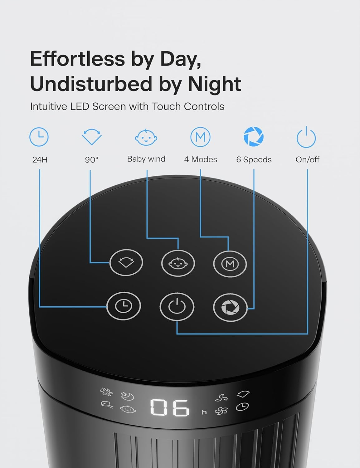 - SET AND FORGET: Take charge of your comfort with our 24-hour programmable timer, allowing you to customize your fan's operation for energy-saving convenience and worry-free cooling.