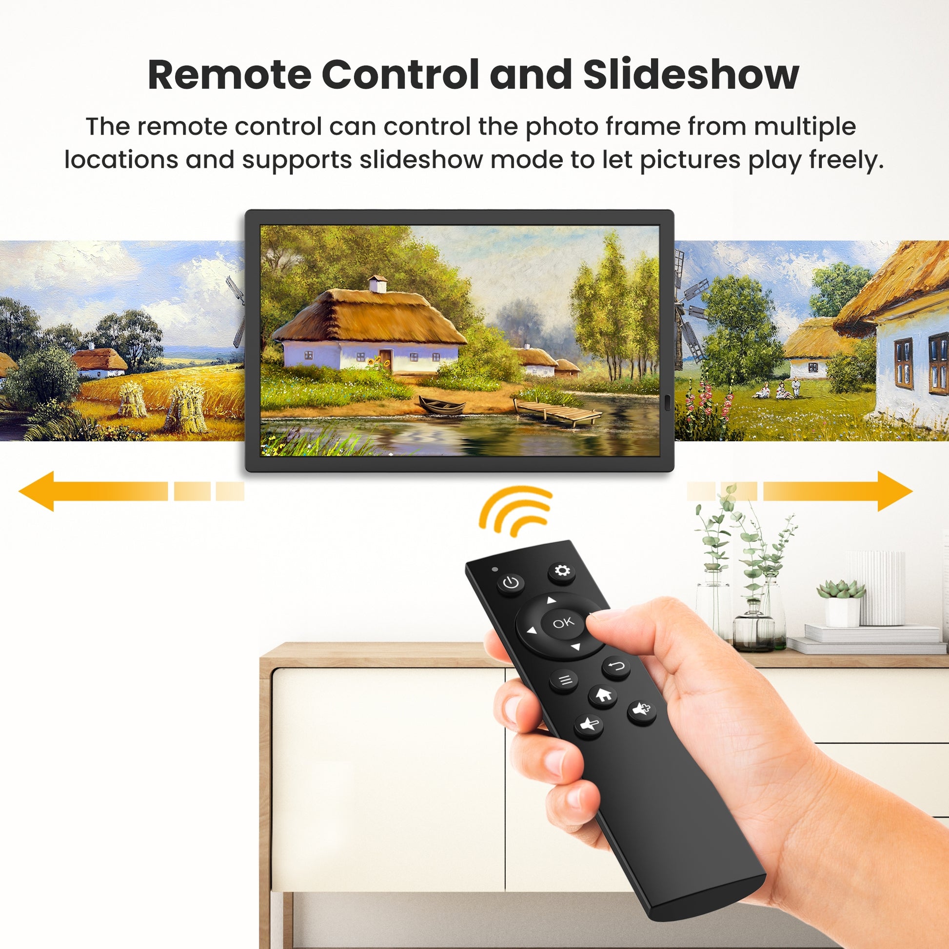 Stay Connected with the Proscan Digital Frame: Instant Photo Sharing from Anywhere! Capture and share your favorite moments instantly with the Uhale app! This user-friendly app allows you to connect directly from your smartphone, no matter where you are in the world. Simply download the free Uhale app, pair it with your digital frame, and start sending photos and videos in seconds. Enjoy stunning visuals on a vibrant 21.5" high-resolution display (1920 x 1080 pixels) that brings your photos and videos to life with rich, vivid colors. The smart auto-rotation feature seamlessly adjusts the orientation of your photos as you change the frame from landscape to portrait mode. Plus, you can show photos directly from an external micro SD card, keeping your frame’s storage free for more memorable moments!