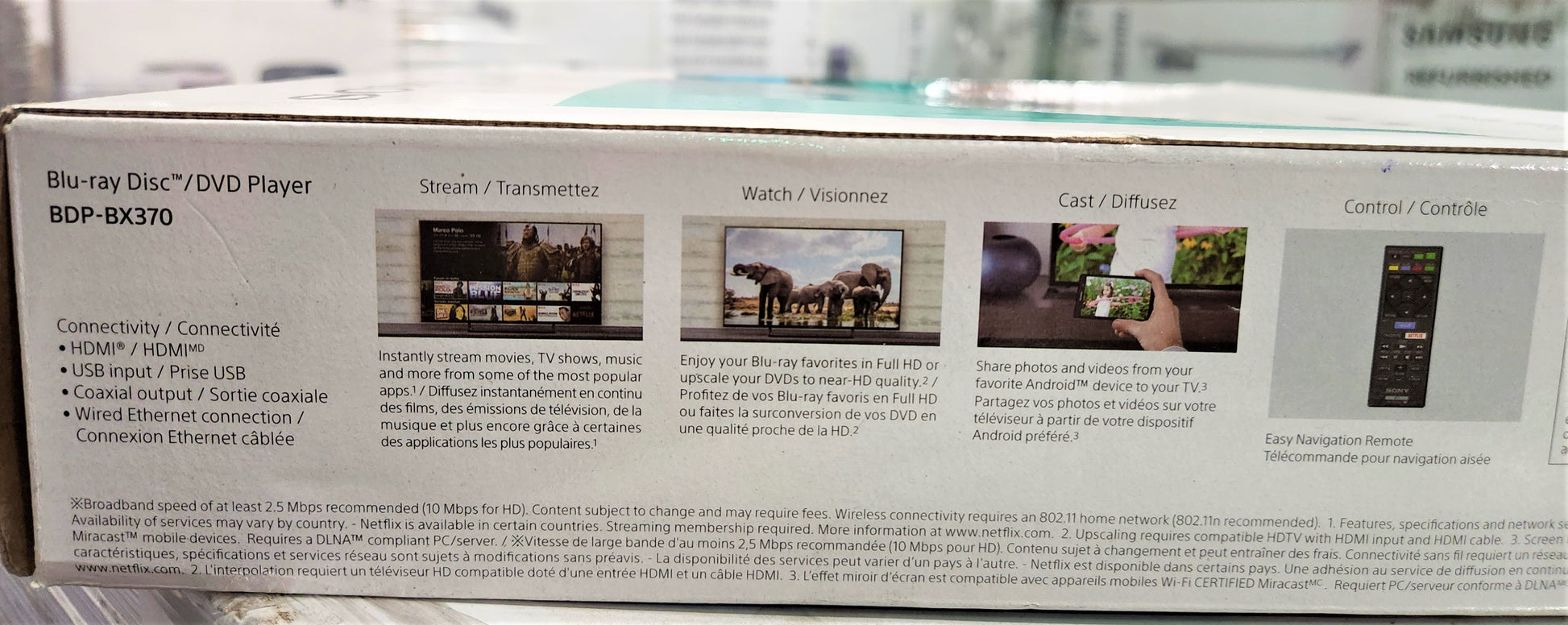 Sony BDP-BX370 Blu-ray Disc Player with built-in Wi-Fi and HDMI cable (Renewed)