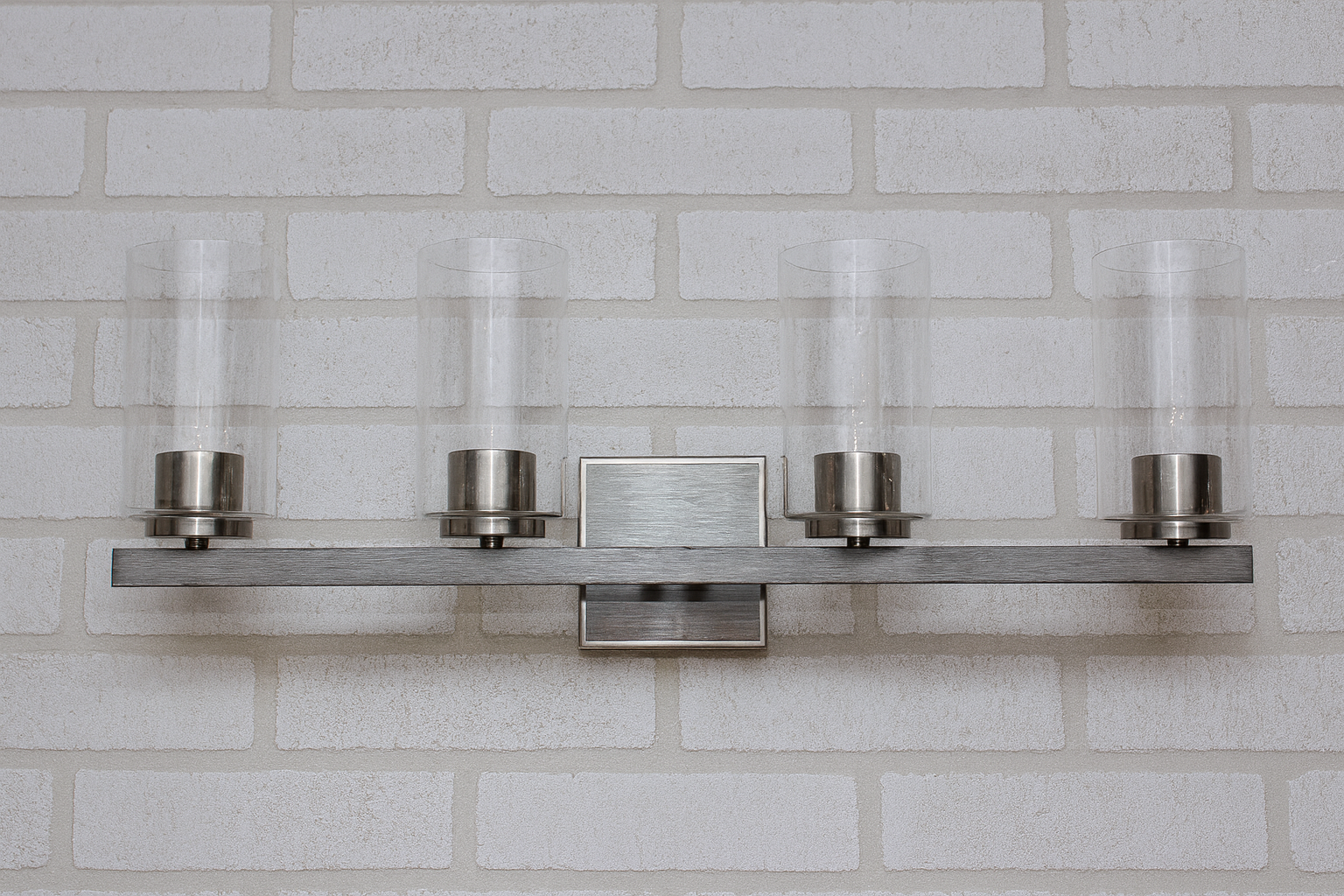 Sunset 4-Light 100W MB Halston Vanity - Timber Gray / Bright Satin Nickel F16204-81