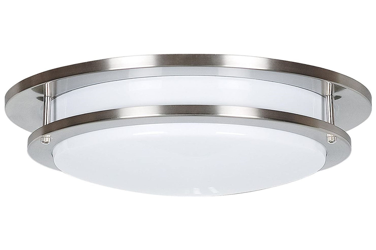 Sunset Lighting F9883-80 Flush Mount with White Acrylic Lens Shades, Bright Satin Nickel Finish Features: