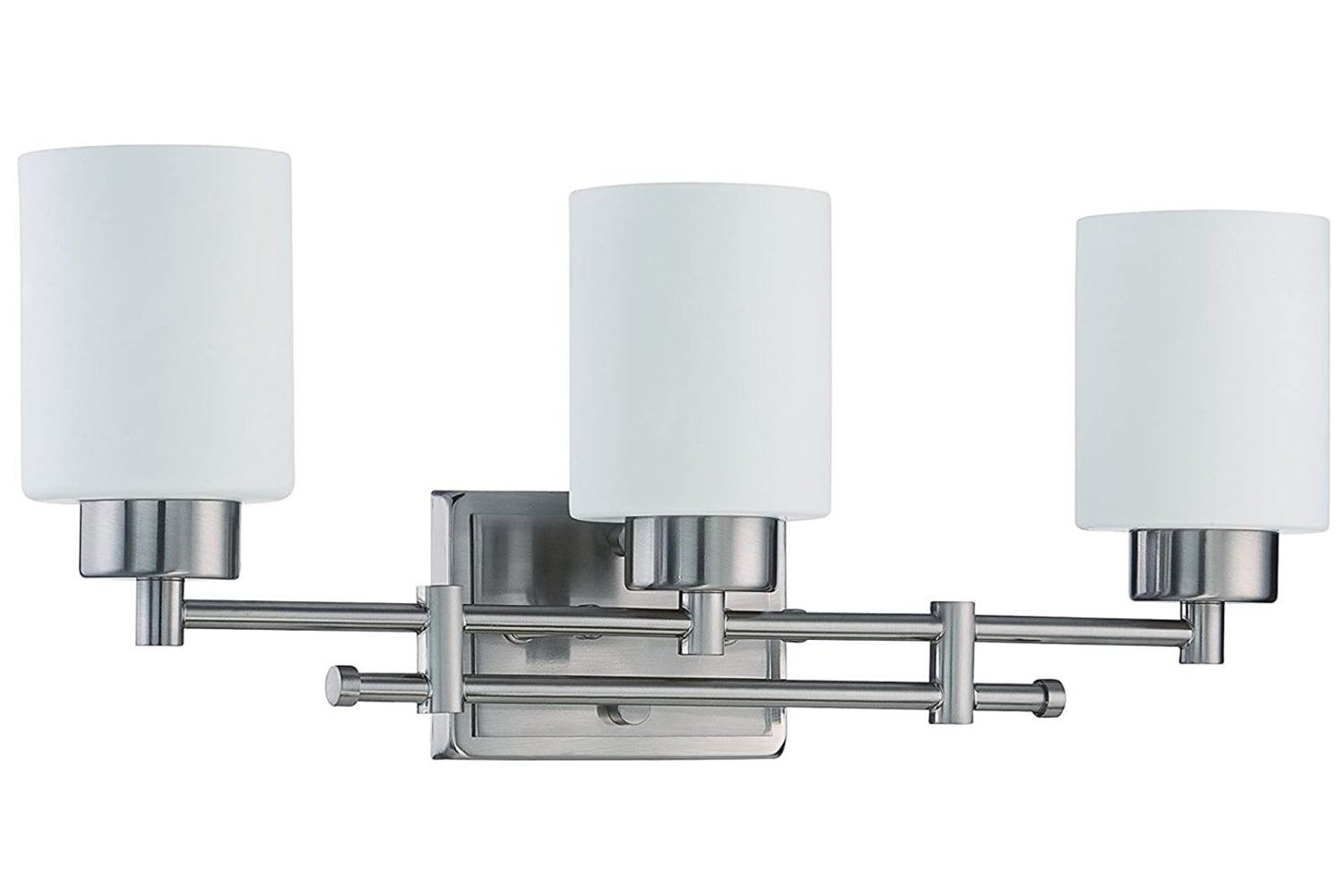 Sunset Lighting 3-Light Ledbury Vanity Opal Etched Glass, Dimmable w/ Bright Satin Nickel Finish - F3153-80