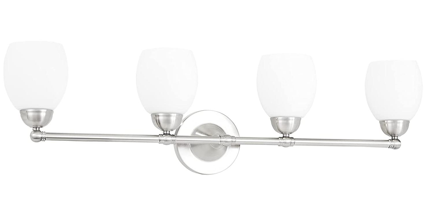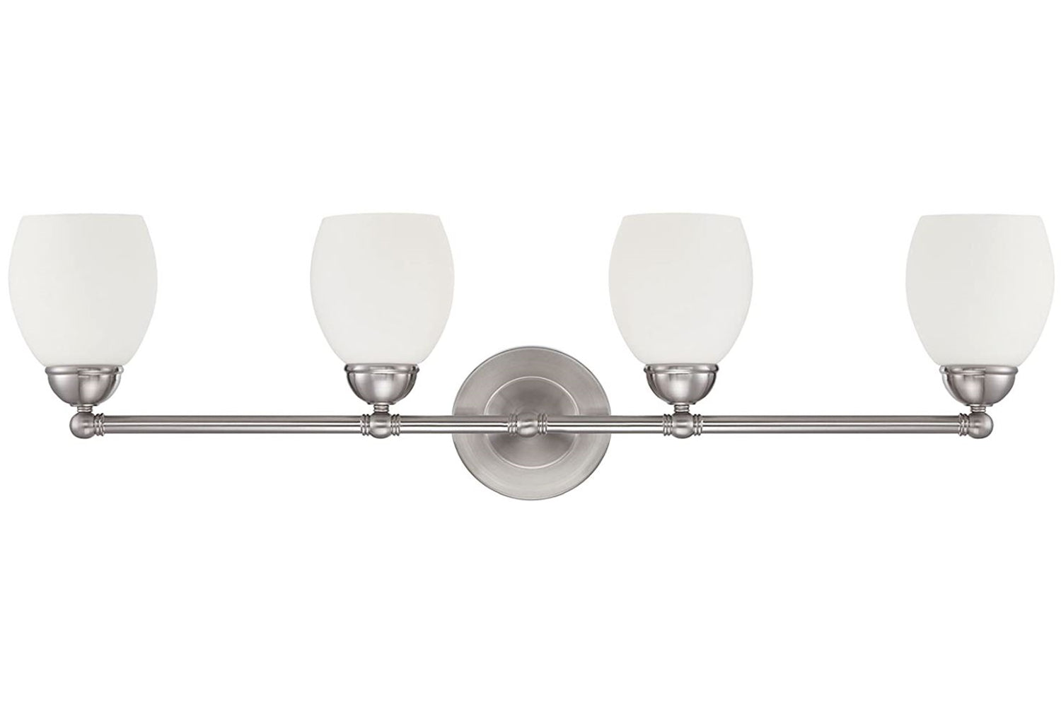 Sunset Lighting 4-Light Olen Vanity Opal Glass w/ Bright Satin Nickel Finish