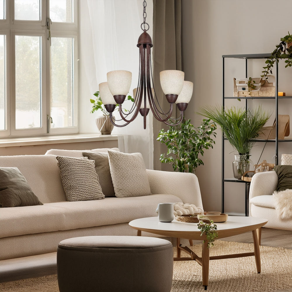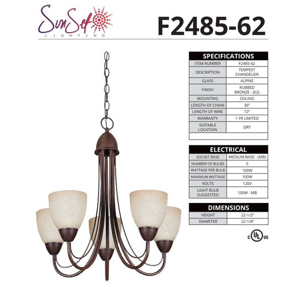 Sunset Lighting Tempest Rubbed Bronze 5-Light Chandelier Alpine Glass F2485-62