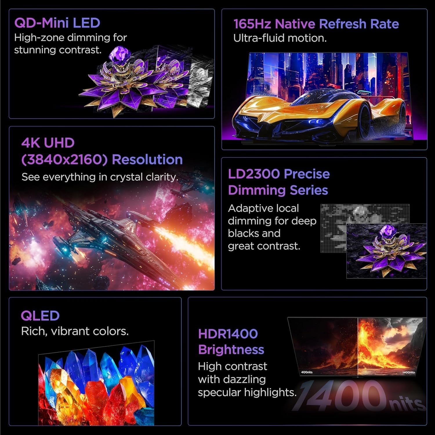 TCL’s QD-Mini LED delivers brilliant brightness and pinpoint precision — perfect for deep, immersive gameplay.
