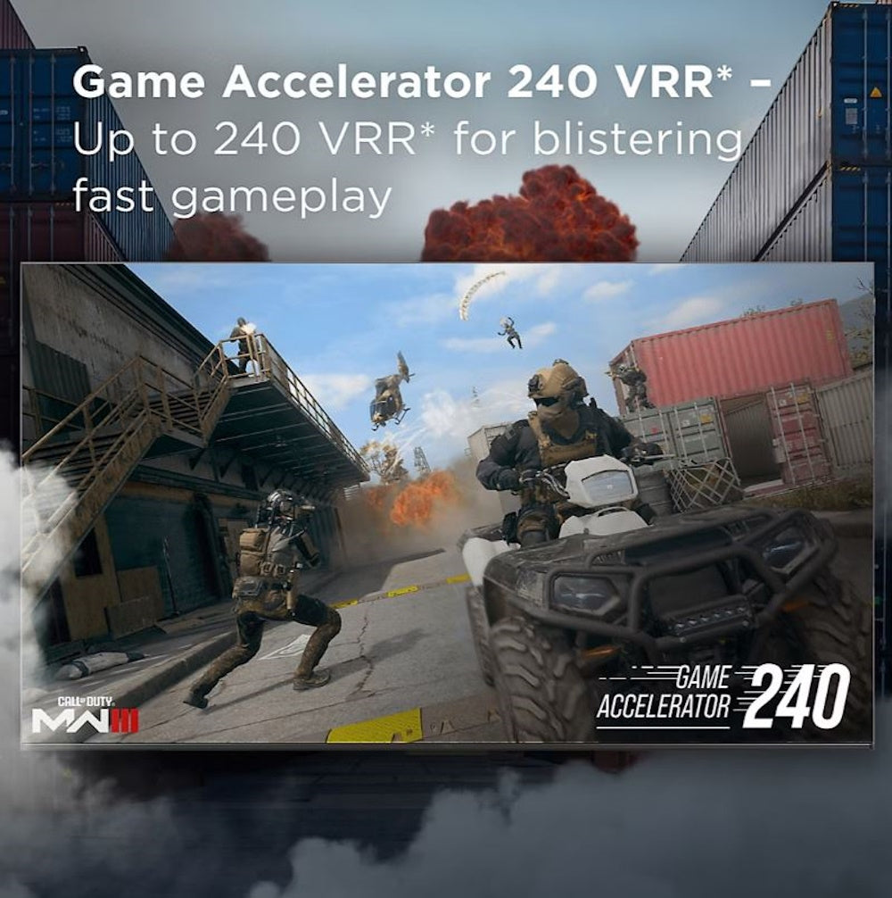 - Game accelerator 120: With up to fast 120 VRR, enjoy more responsive gameplay without lag, designed to keep you at the top of any leaderboard