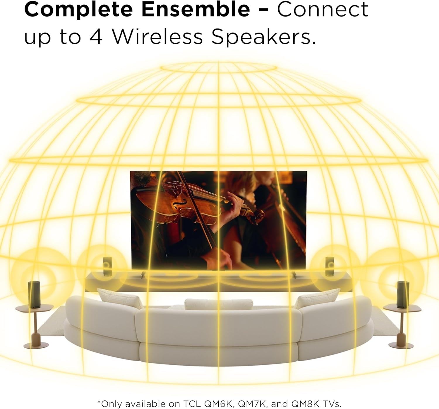 The wireless speaker(s) integrate perfectly with select TCL TVs to deliver a simple yet immersive audio experience.