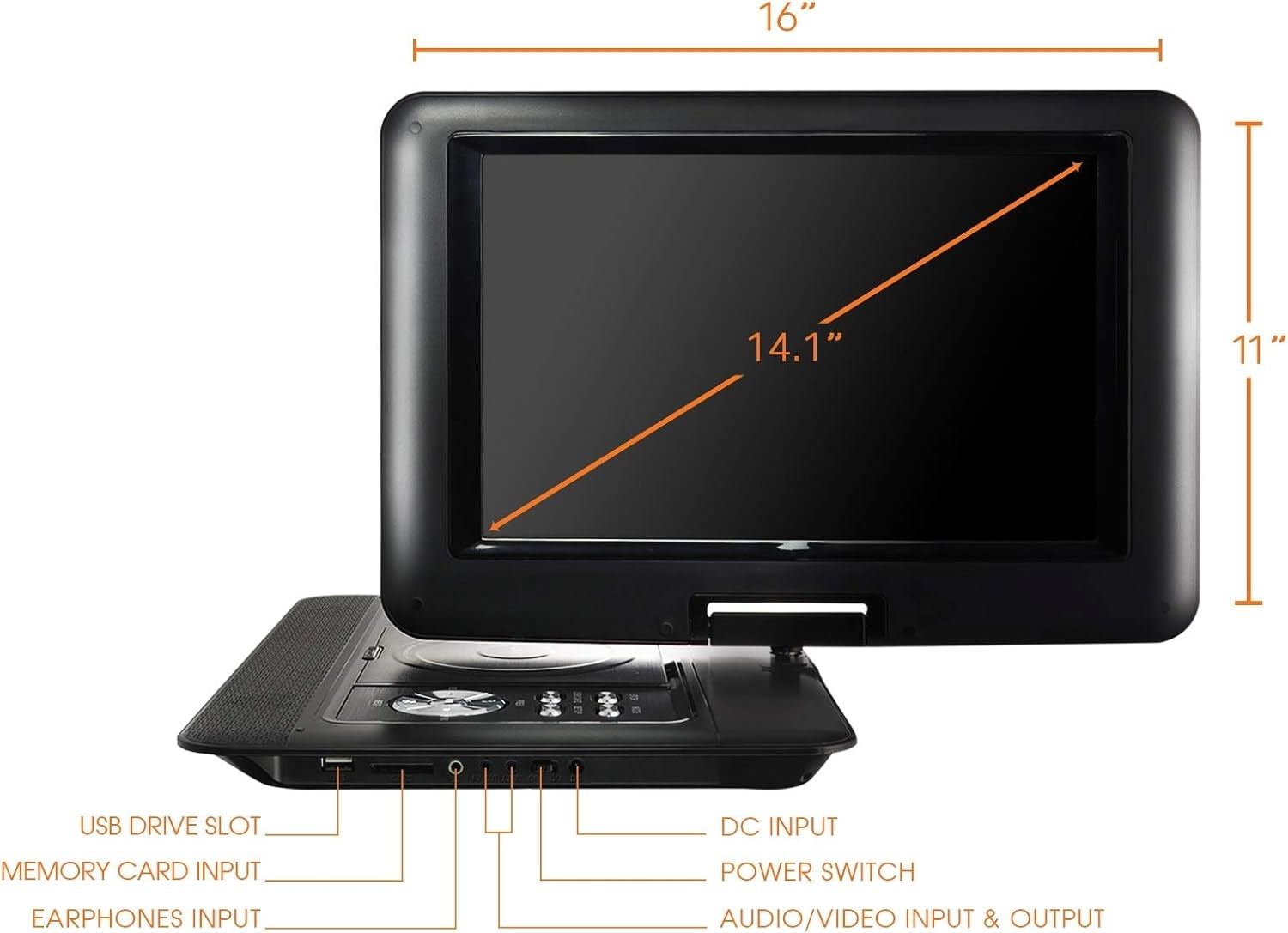 Trexonic TRX-1580 14.1 Inches Portable DVD Player with TFT-LCD Screen & USB, SD & AV Inputs Specifications: