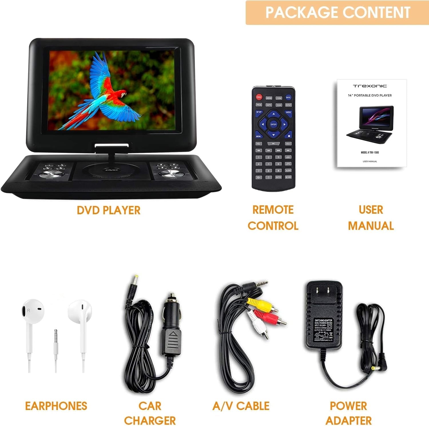 - Trexonic TRX-1580 14.1 Inches Portable DVD Player with TFT-LCD Screen
