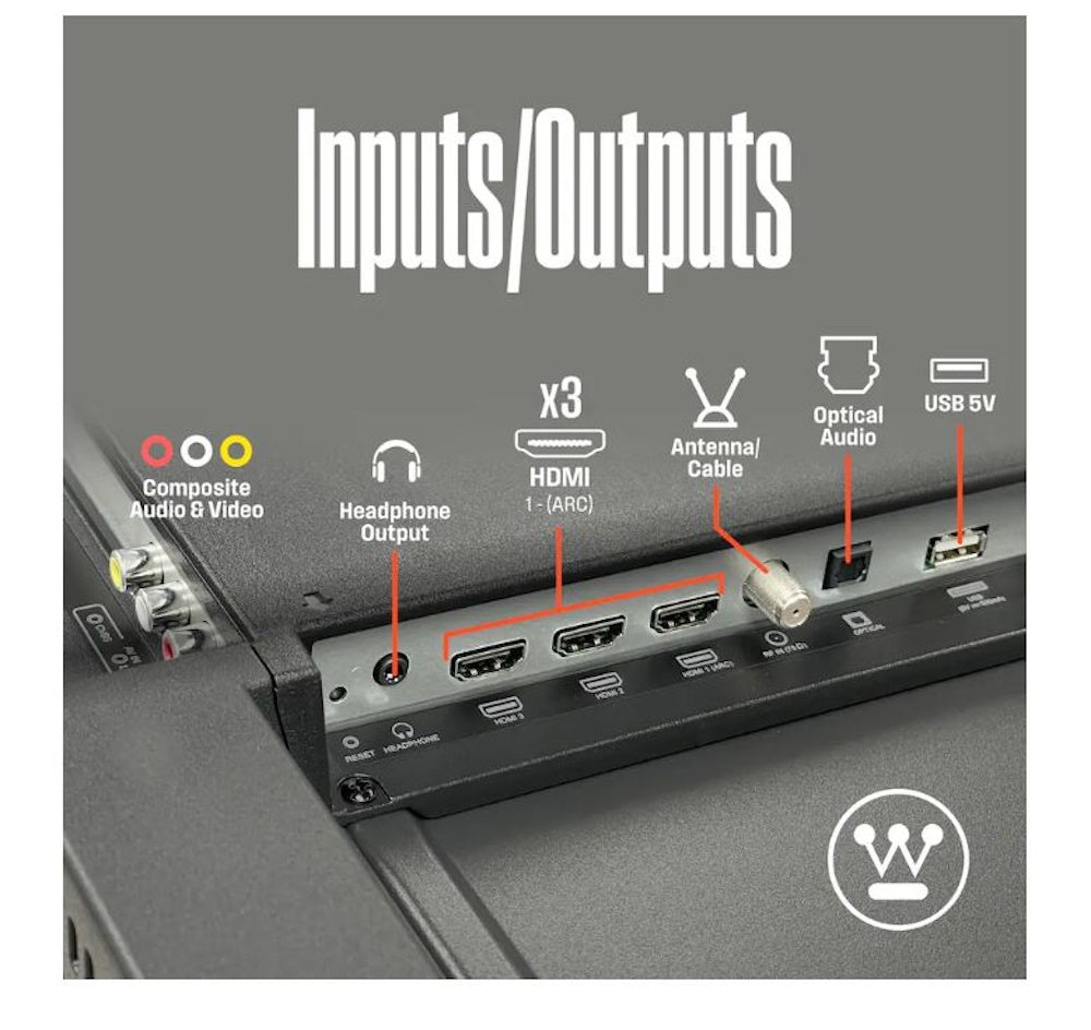 Packed with 3 x HDMI, 1 x Composite Video, 1 x Optical Digital Audio inputs for maximum flexibility. A full array of inputs to connect your cable box, game console, streaming stick, sound bar, DVD/Blu-ray player or a digital antenna for local channels.