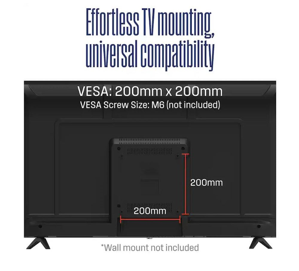 VESA Wall Mount Standard: 200 mm × 200 mm